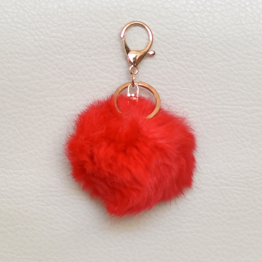 Висулка пухче за чанта, ключодържател от естествен косъм червено