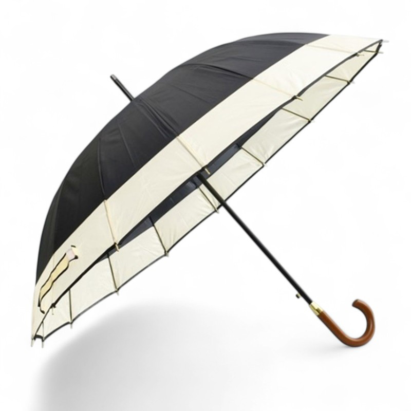 Голям чадър 16 ребра бързосъхнеща материя топ модел черно/сиво райе Код GR-16026-4