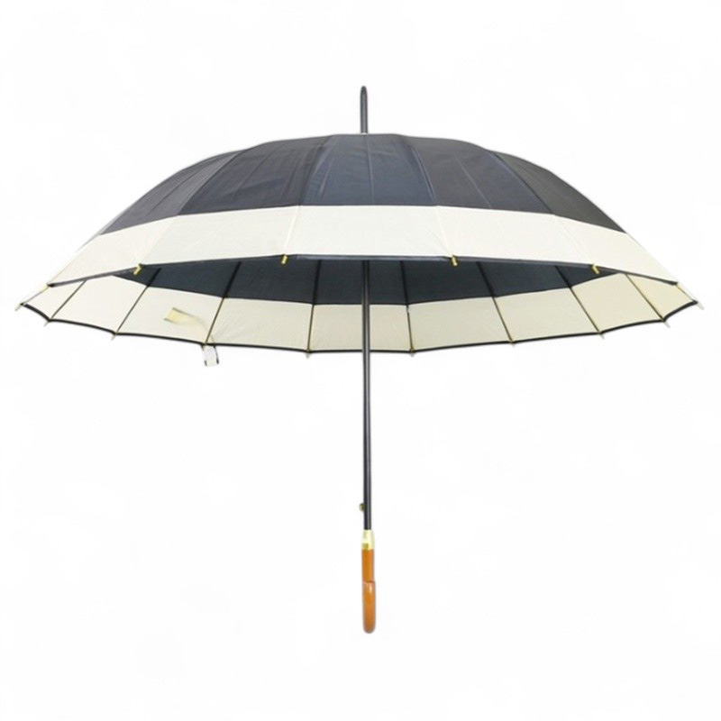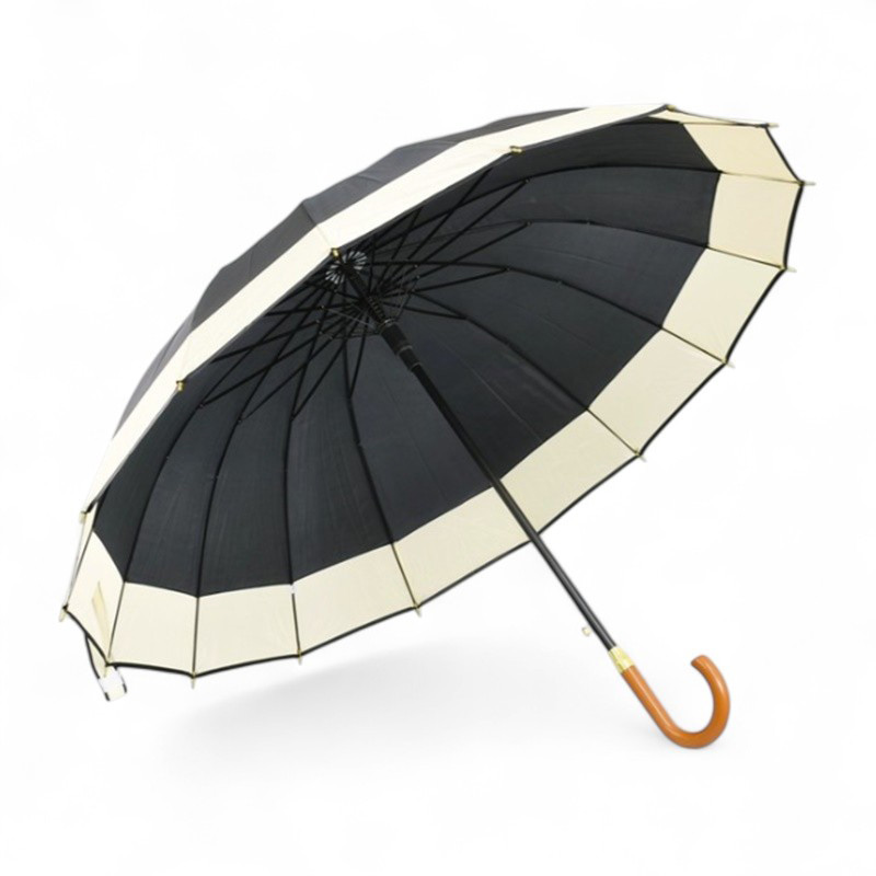 Голям дамски чадър за дъжд с удобна дървена дръжка, ветроустойчив и бързосъхнещ. Чадърът е със здрава рамка, 16 спици.