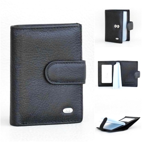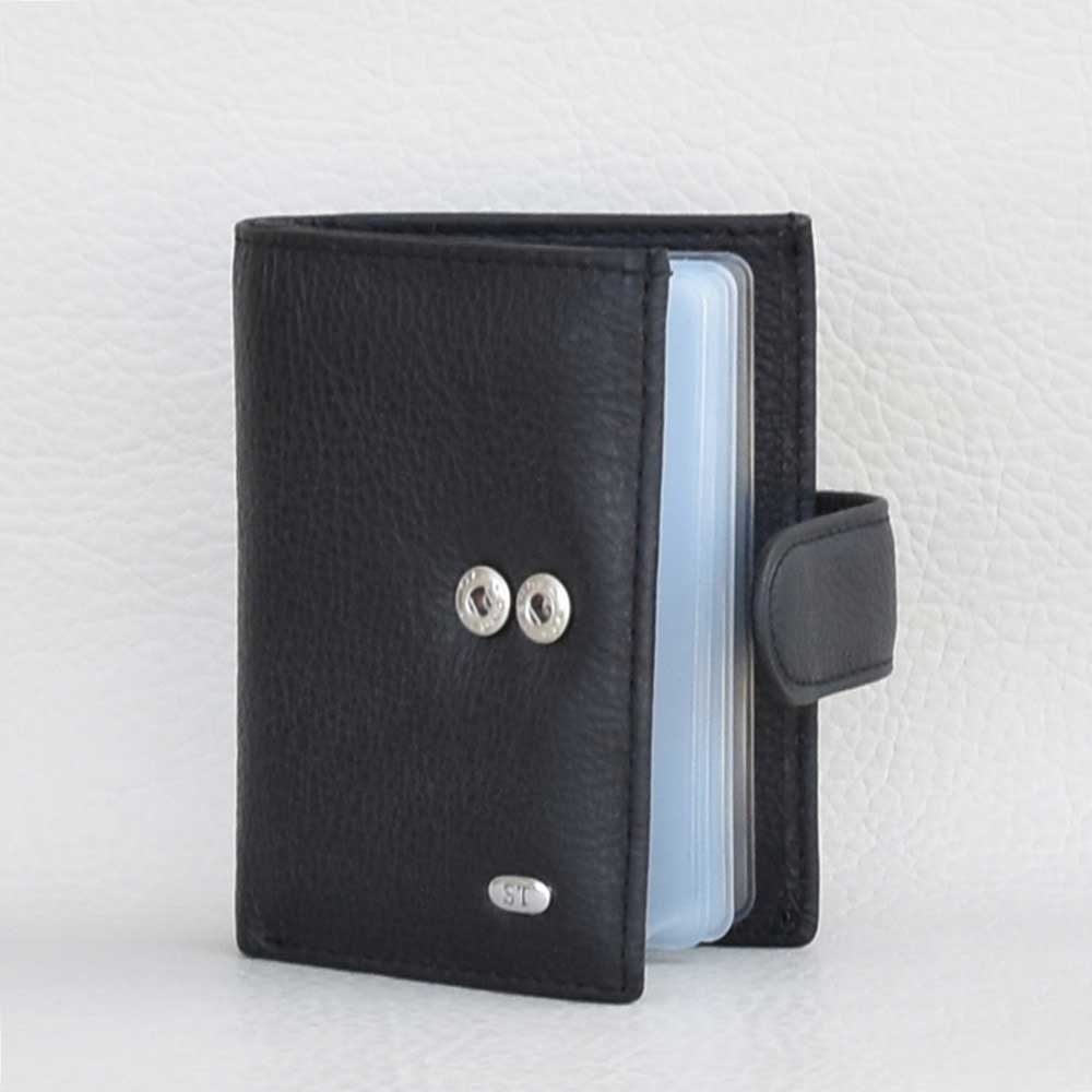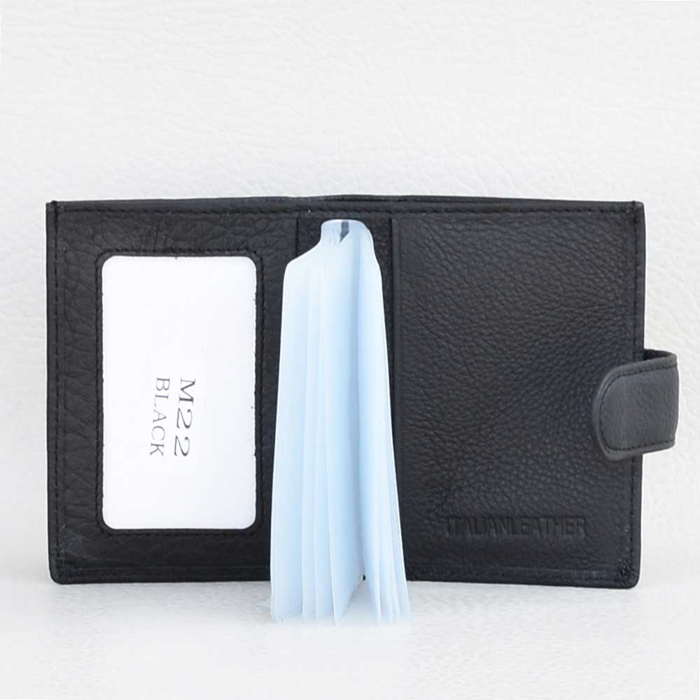Калъф за документи и карти от естествена кожа, тип визитник 12 листа, с отделение за банкноти, черен Код MG102433
