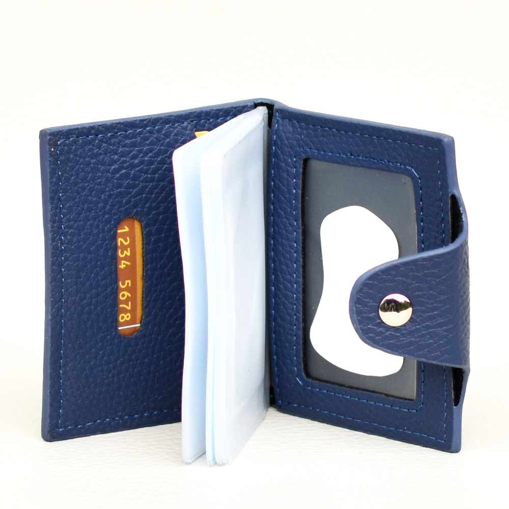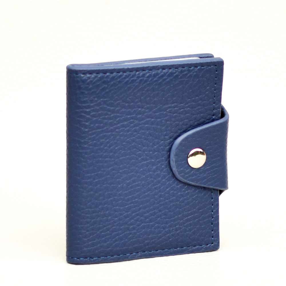 Кожен калъф за документи и карти тип визитник, 20 листа, син