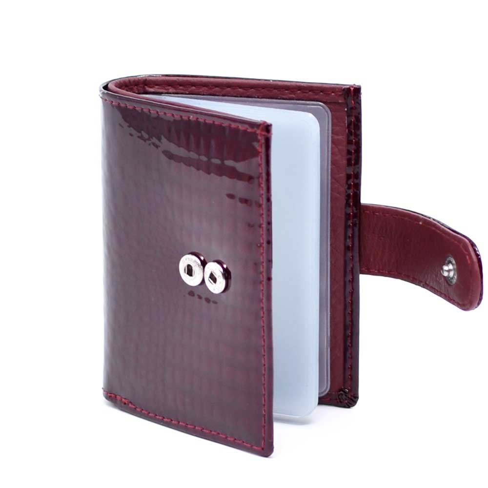 Калъф за документи и карти от естествена кожа, лачен с кроко ефект, 12 листа, с отделение за банкноти, бордо Код MG22-2
