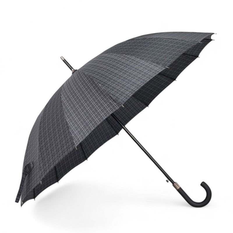 Голям чадър 16 ребра бързосъхнеща материя топ модел черно каре Код GR-16026-2