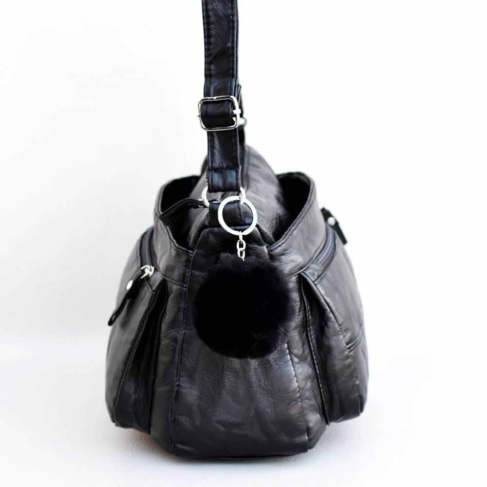 Дамска чанта от мека варена еко кожа, с много джобчета, черна, + ПОДАРЪК висулка Код MP800-12