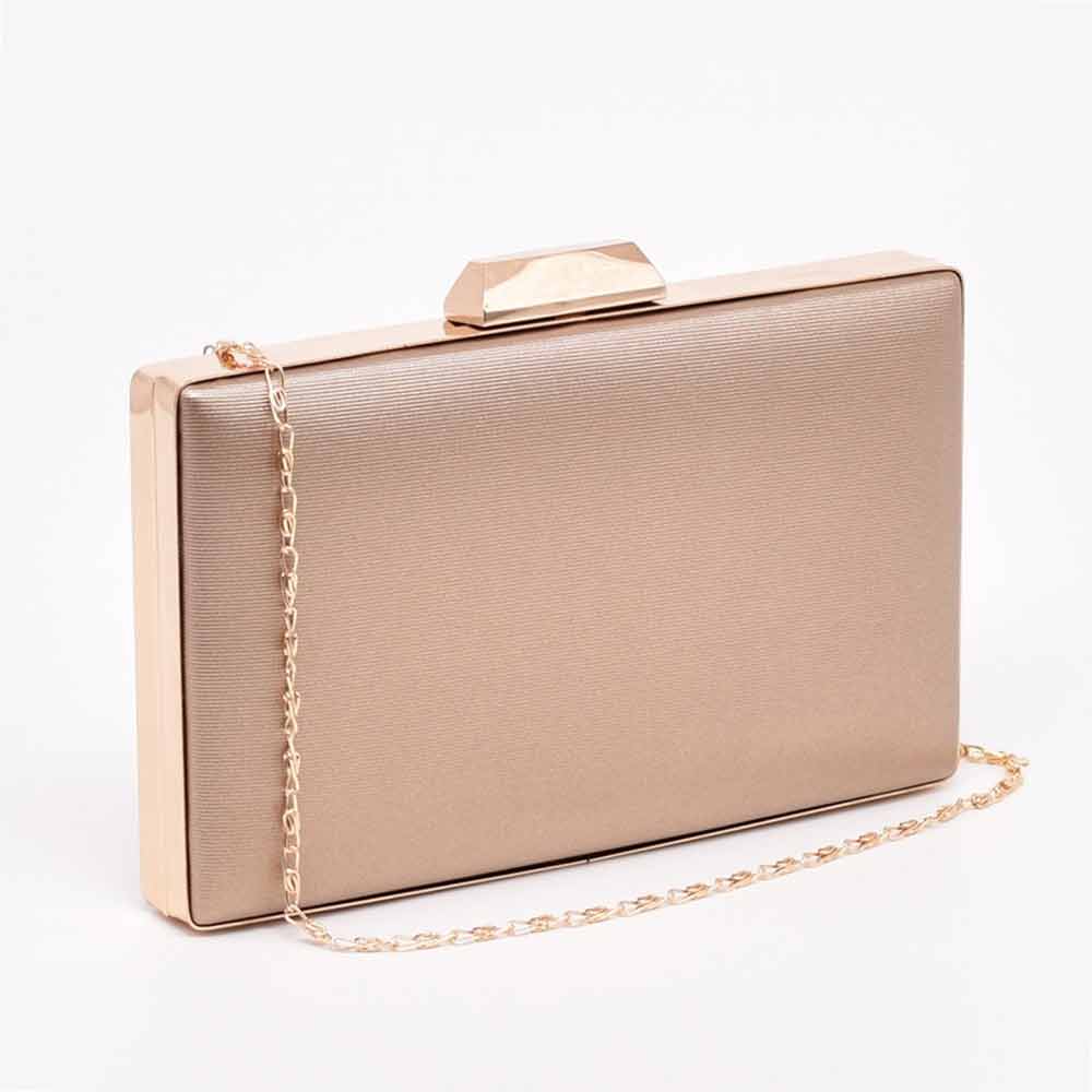 Официална дамска чанта, клъч, с релеф, твърда, бежова със златен обковОфициална дамска чанта, клъч, с релеф, твърда, бежова със златен обков