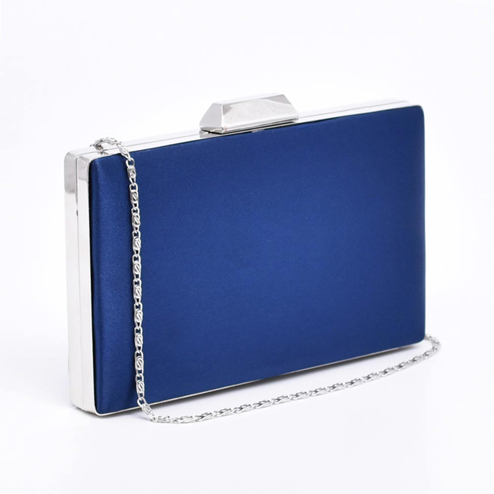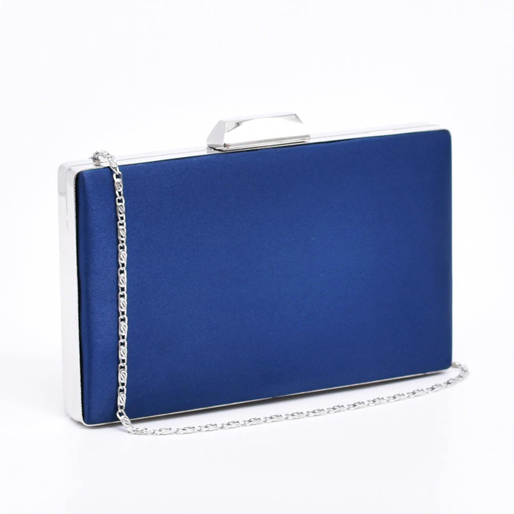 Официална дамска чанта Сатен, твърда, тъмно синя със сребърен обков