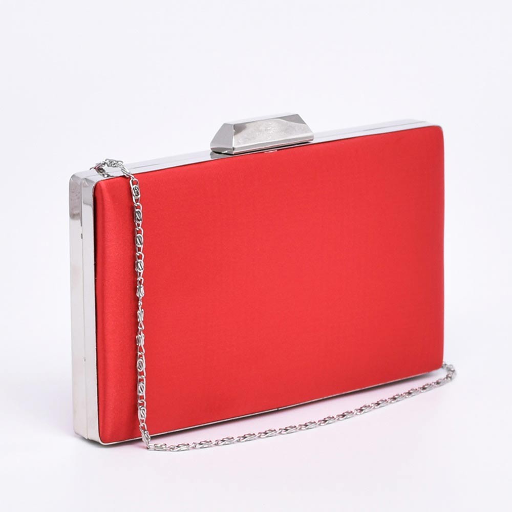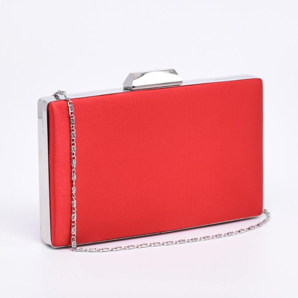 Официална дамска чанта Сатен, твърда, червена със сребърен обков