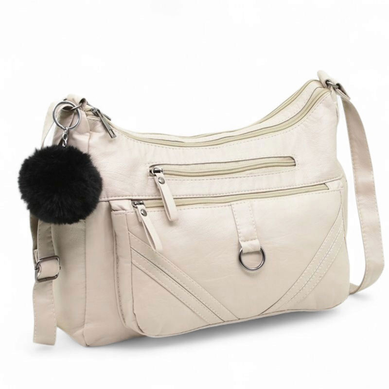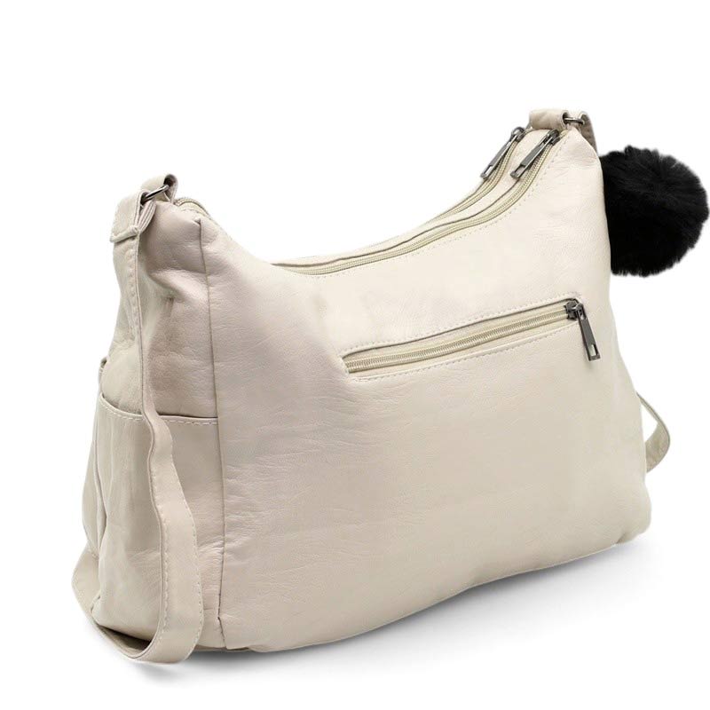 Дамска чанта за през рамо мека варена еко кожа бежова ПОДАРЪК висулка Код GL2-1533-1
