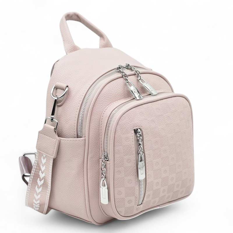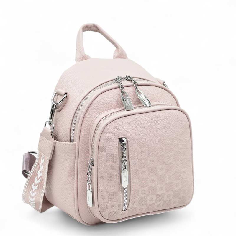 Дамска раница/чанта с две основни отделения с цип класически модел пудра Код GL-80102-3