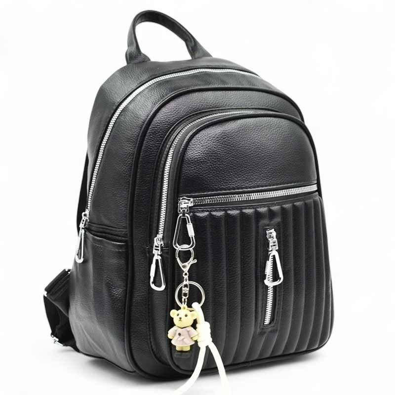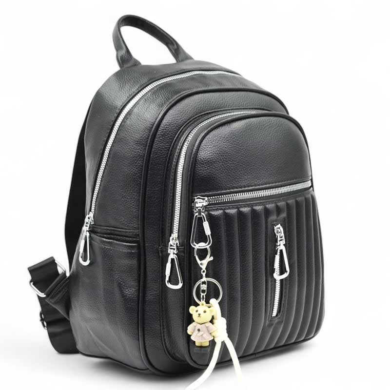 Дамска раница от еко кожа с ефектна висулка изчистен модел черна Код GL-8009