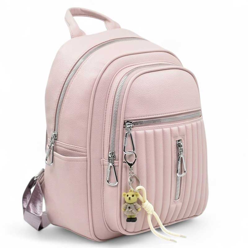 Дамска раница от еко кожа с ефектна висулка изчистен модел розова Код GL-8009-2