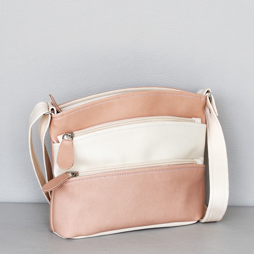 Българска дамска чанта за през рамо малка с три отделни прегради и джоб на гърба Код D13009