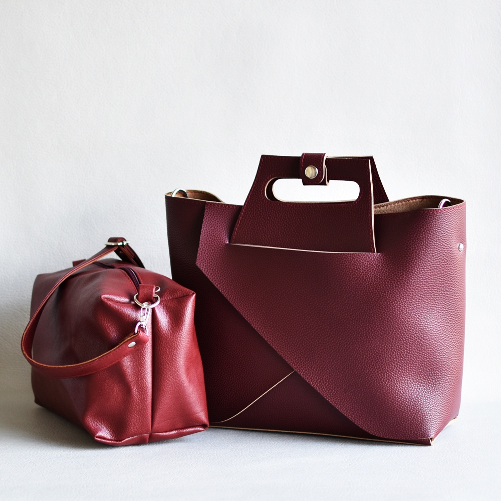 Българска дамска чанта 2 в 1 с органайзер от еко кожа бордоБългарска дамска чанта 2 в 1 с органайзер от еко кожа бордо