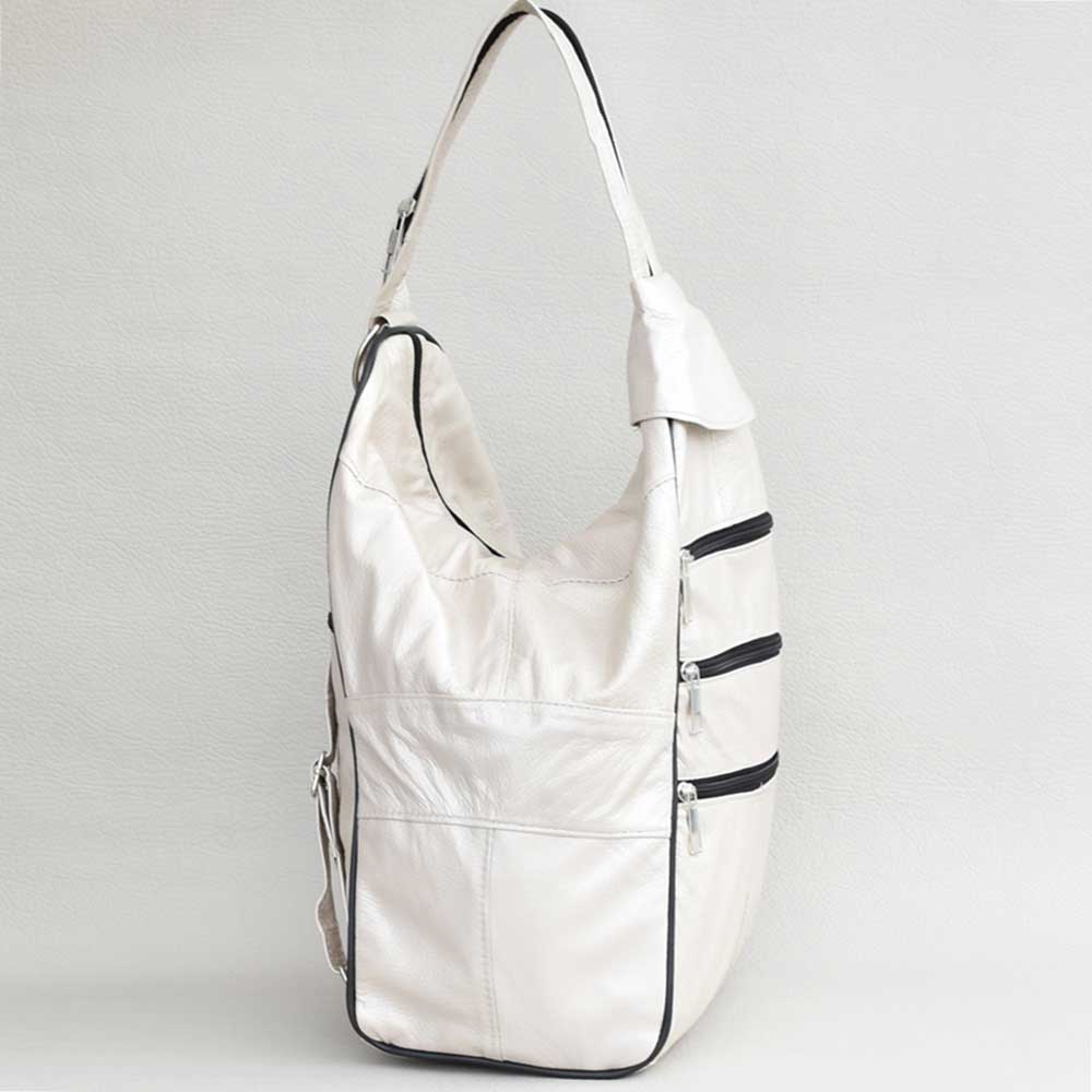 Дамска раница-чанта от естествена кожа с външни джобчета, перлаДамска раница-чанта от естествена кожа с външни джобчета, перлаДамска раница-чанта от естествена кожа с външни джобчета, перлаДамска раница-чанта от естествена кожа с външни джобчета, перла
