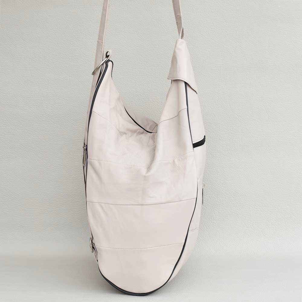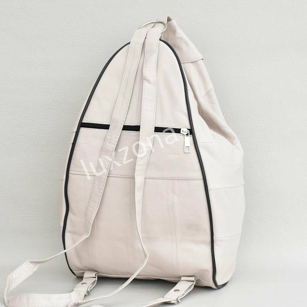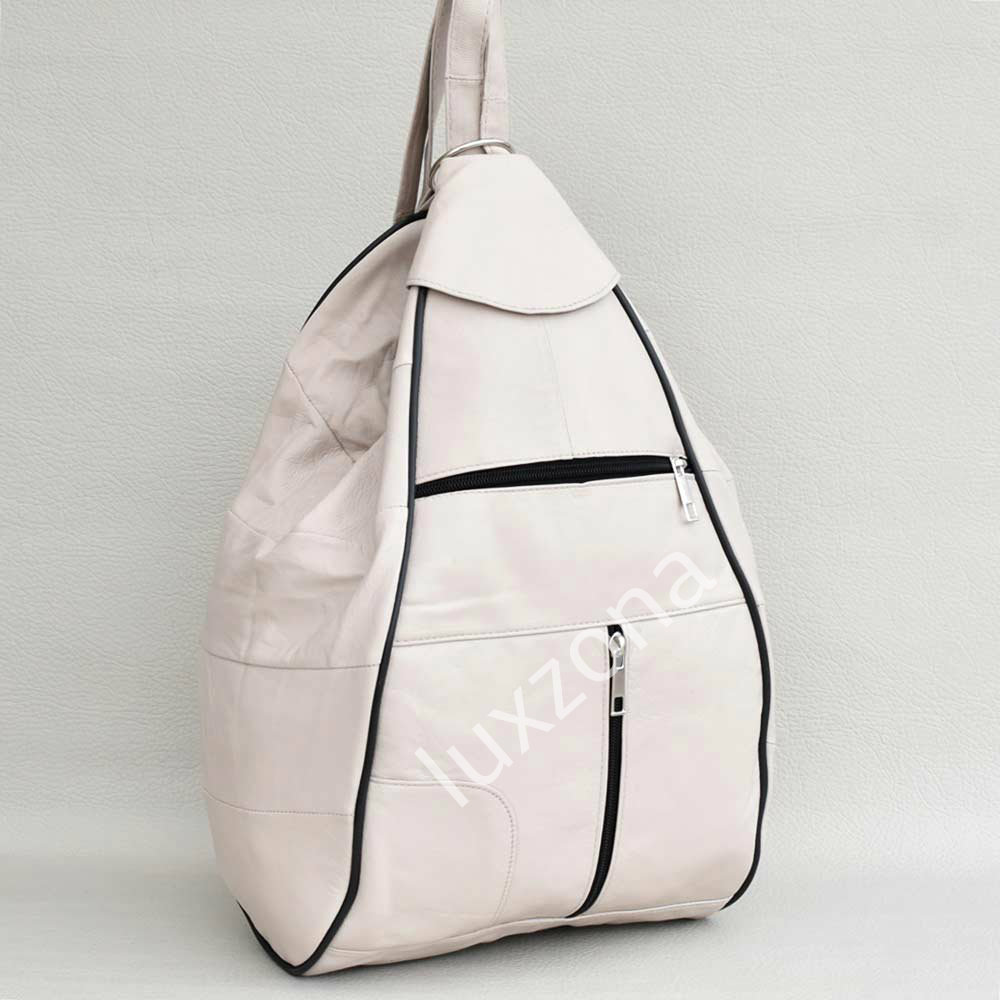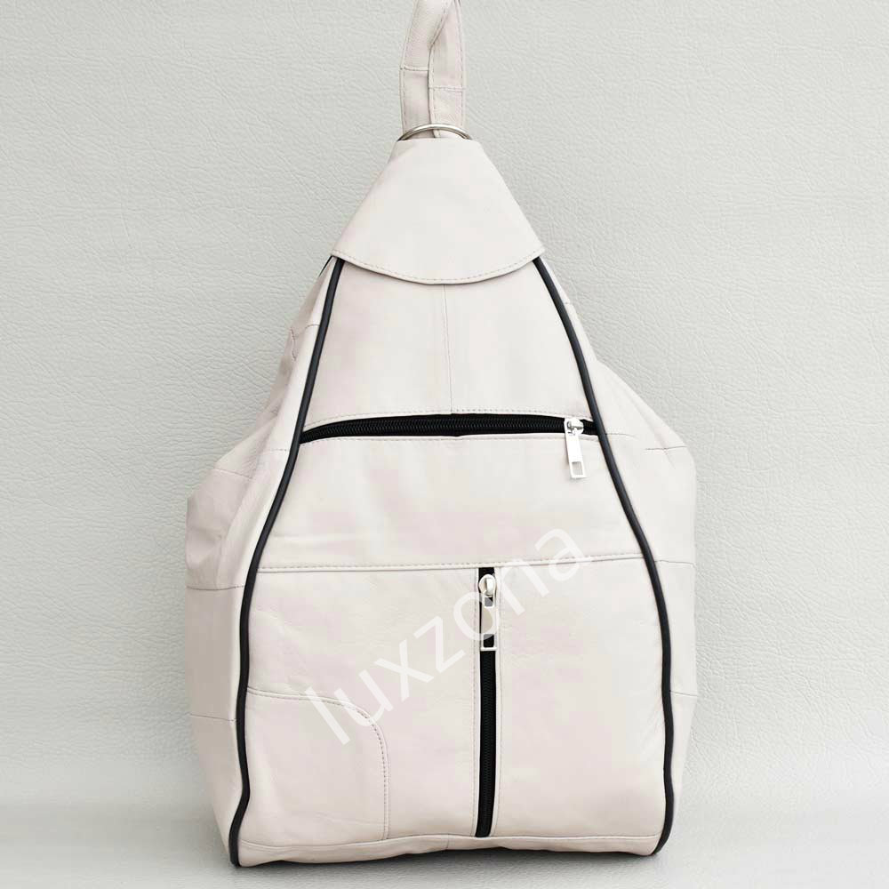 Дамска раница-чанта от естествена кожа с външни джобчета, слонова кост