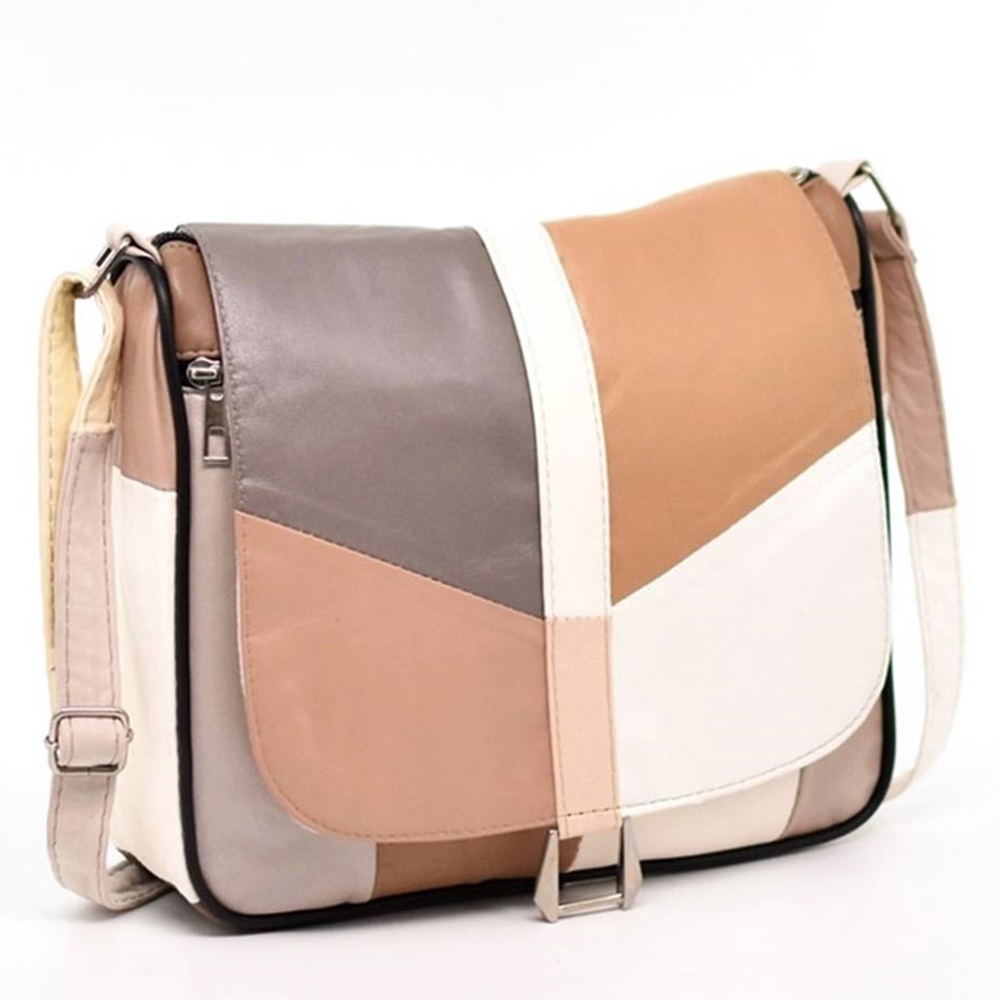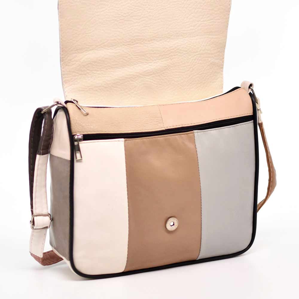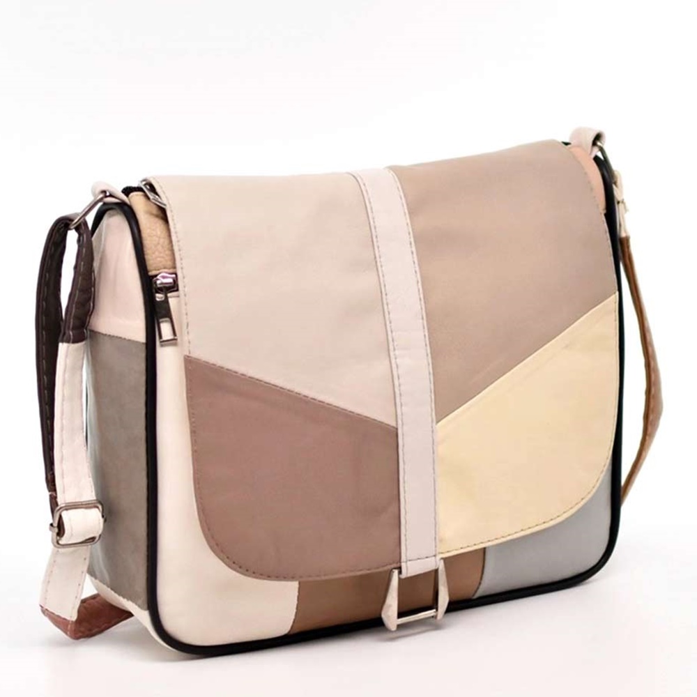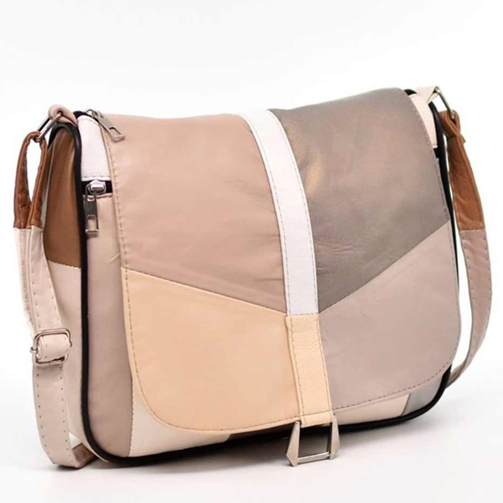 Дамска чанта за през рамо мека варена еко кожа бежова ПОДАРЪК висулка Код GL2-1533-1