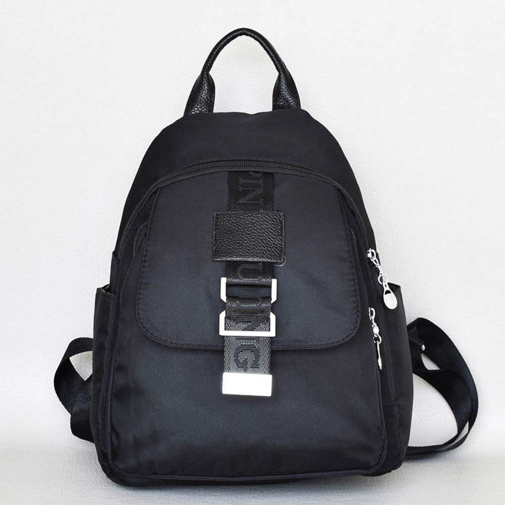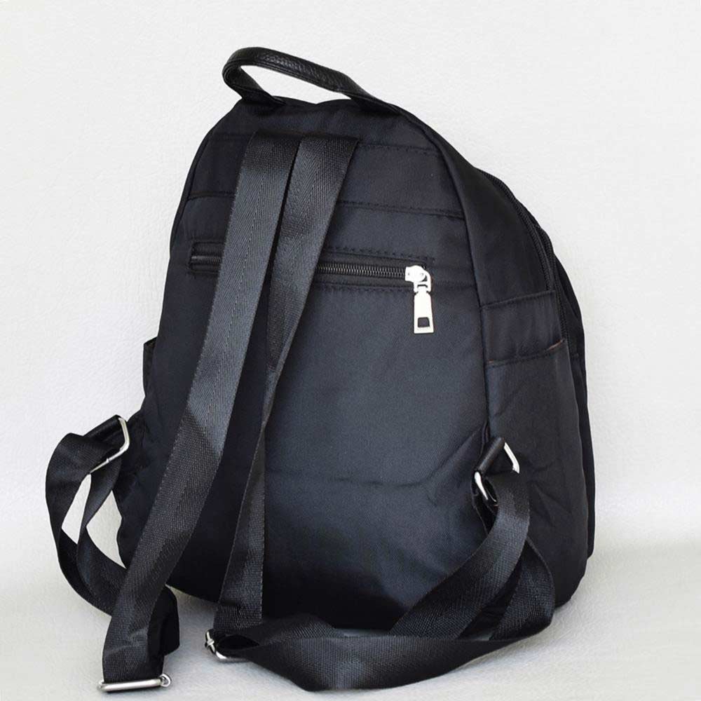 Дамска раница текстилна от непромокаем здрав плат с капак, с ефектна катарама, магнитно закопчаване, преден и заден джоб с цип, две странични джобчета. Вътрешно разпределение: текстилен хастар, джоб с цип.