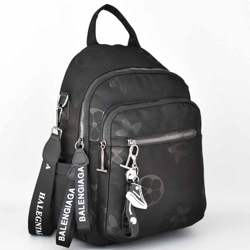 Дамска раница от здрав промазан плат, голяма, с висулка и практично вътрешно разпределение, черна Код M1190-18