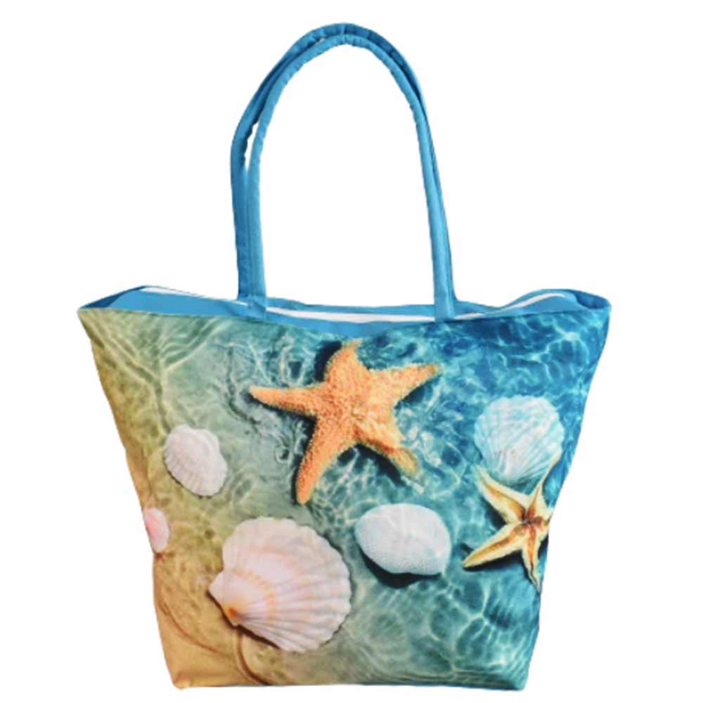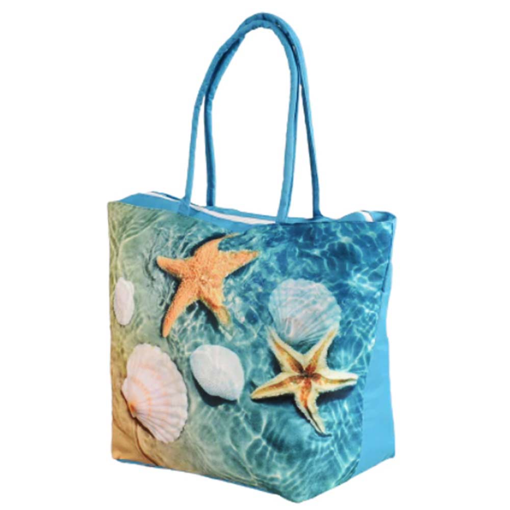 Плажна чанта Морско дъно, евтина, от непромокаем плат, затваряне с цип