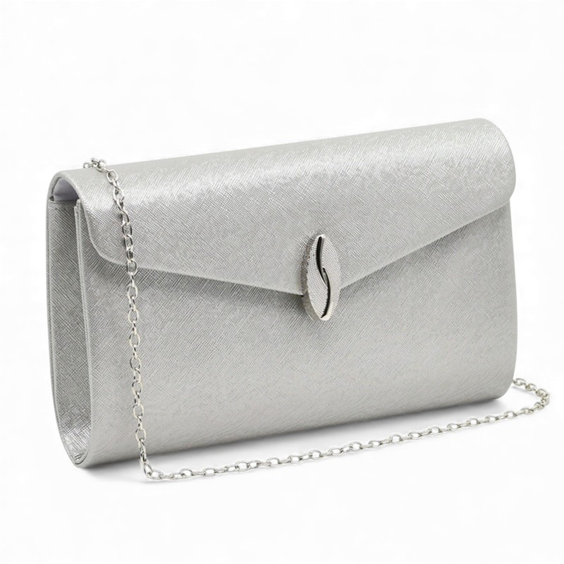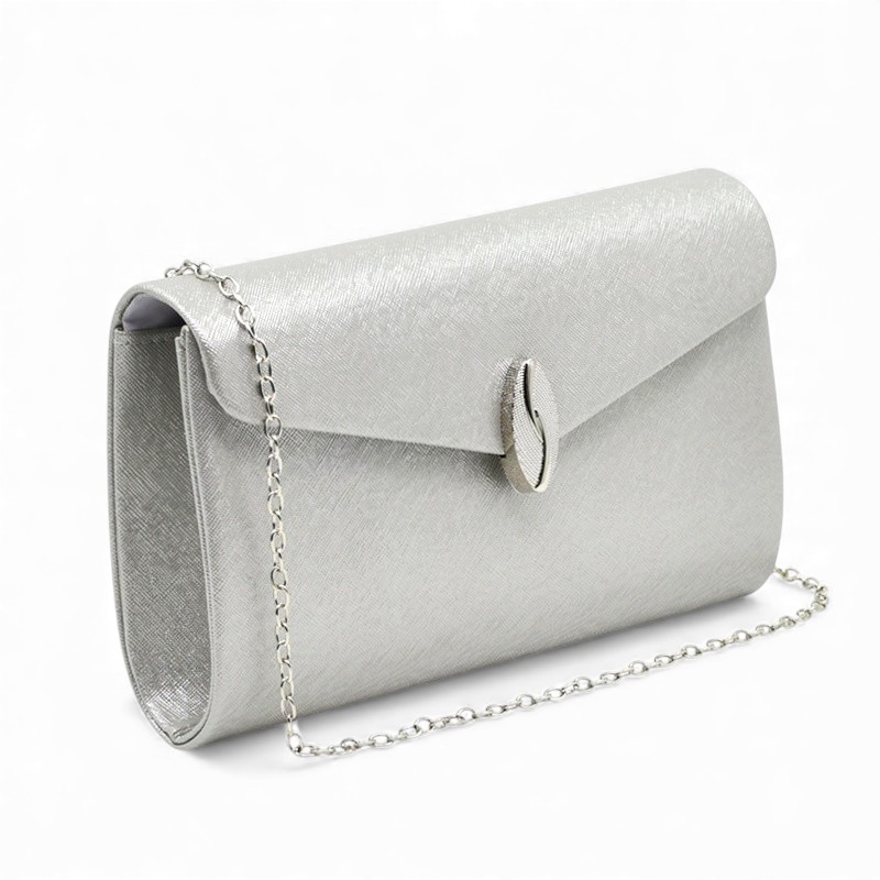 Клъч официална дамска чанта ефектен капак с метална лайсна лек релеф сребро/перла Код GL50855-6