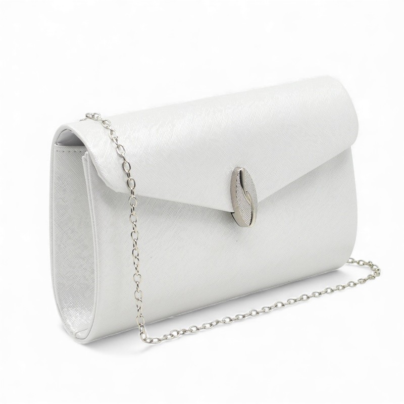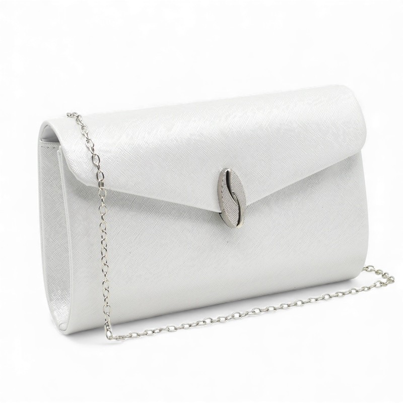 Клъч официална дамска чанта ефектен капак с метална лайсна лек релеф сребро/перла Код GL50855-6
