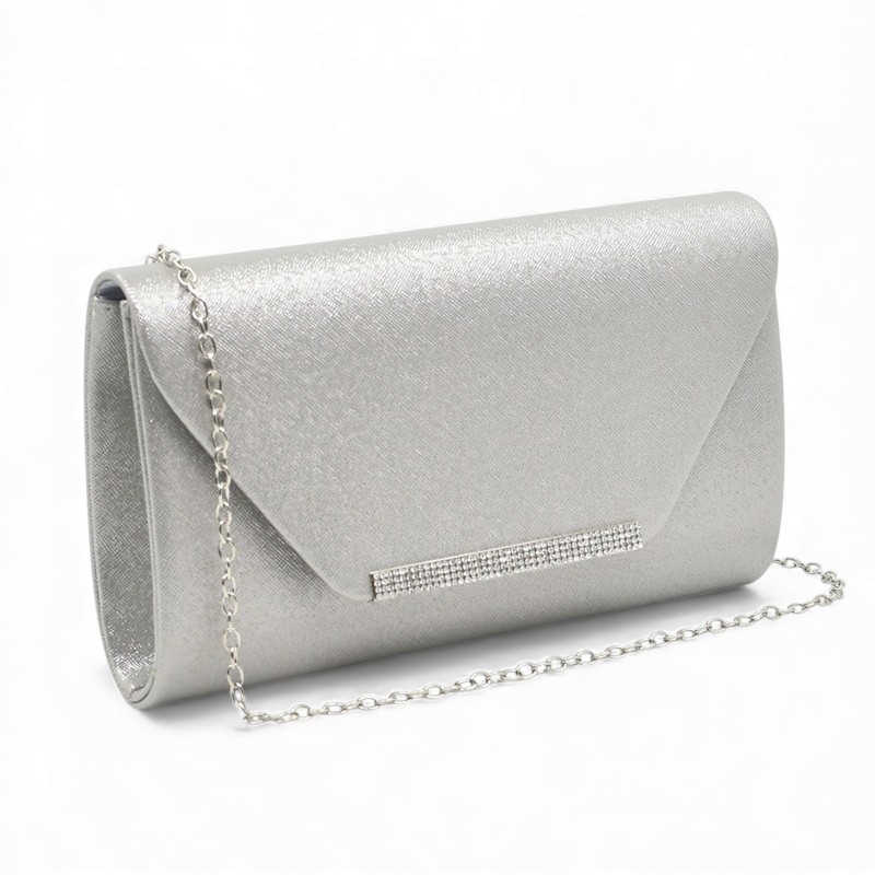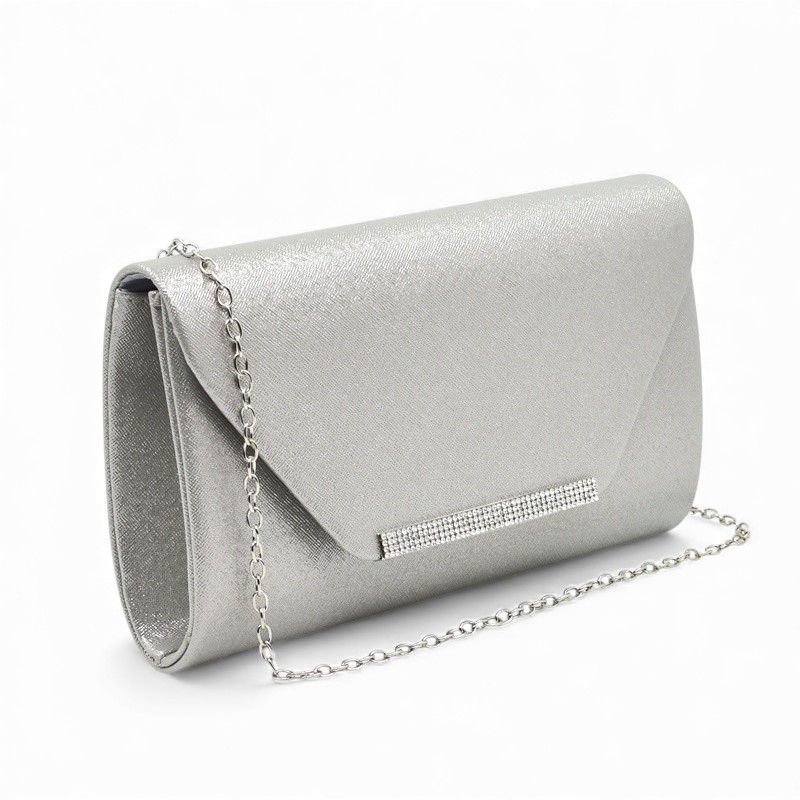 Клъч официална дамска чанта с ефектна катарама сребърен обков топ модел сребърна Код GL-2598-4