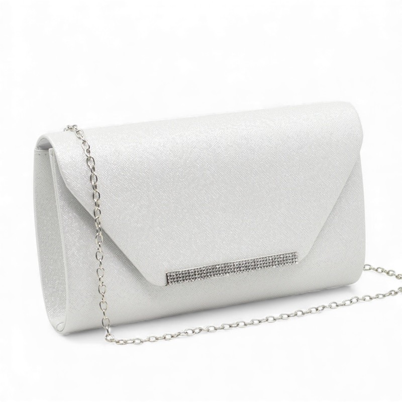 Клъч официална дамска чанта капак с лайсна с блестящи камъчета стилен модел бяла Код GL-2599-5