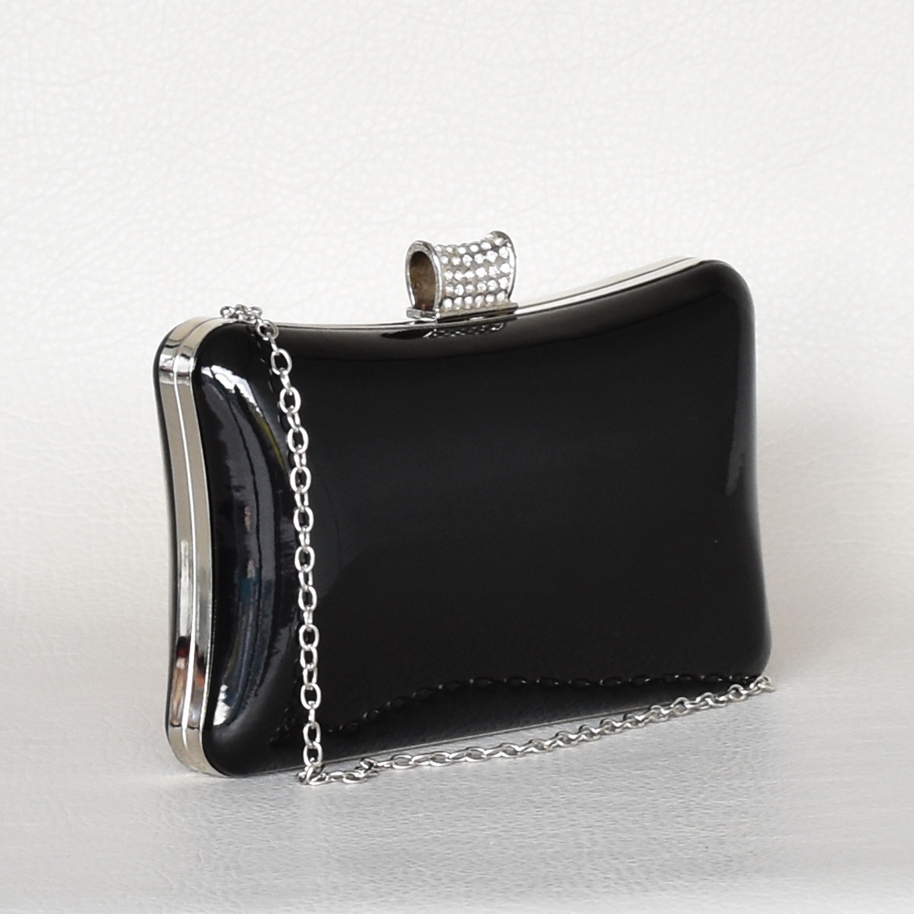 Дамска чанта клъч лачена твърда стилен дизайн официална черна Код H1901446
