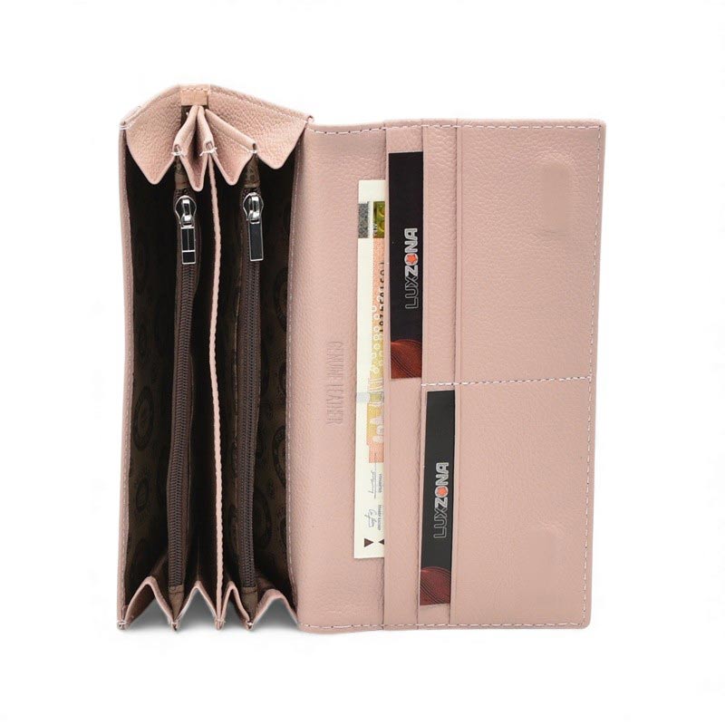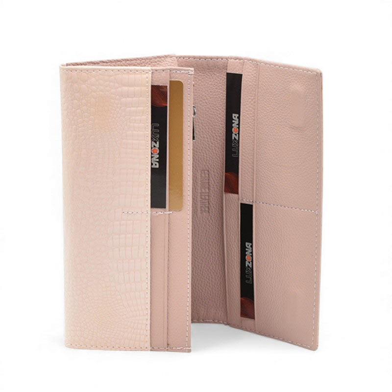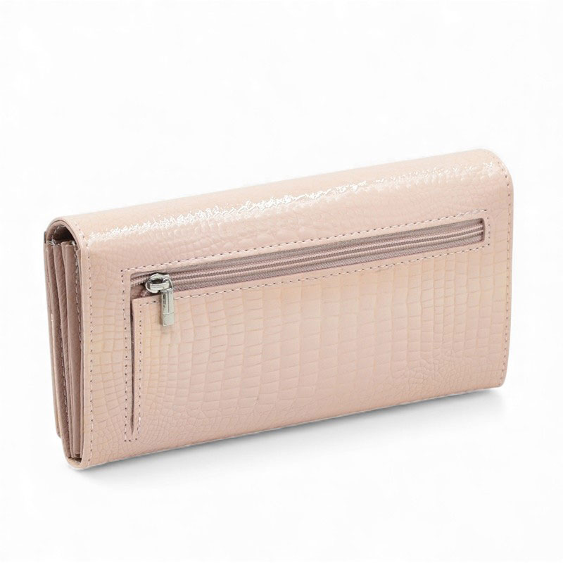 Лачено дамско портмоне от естествена кожа кроко ефект практичен модел светло розово Код L-23-17-1