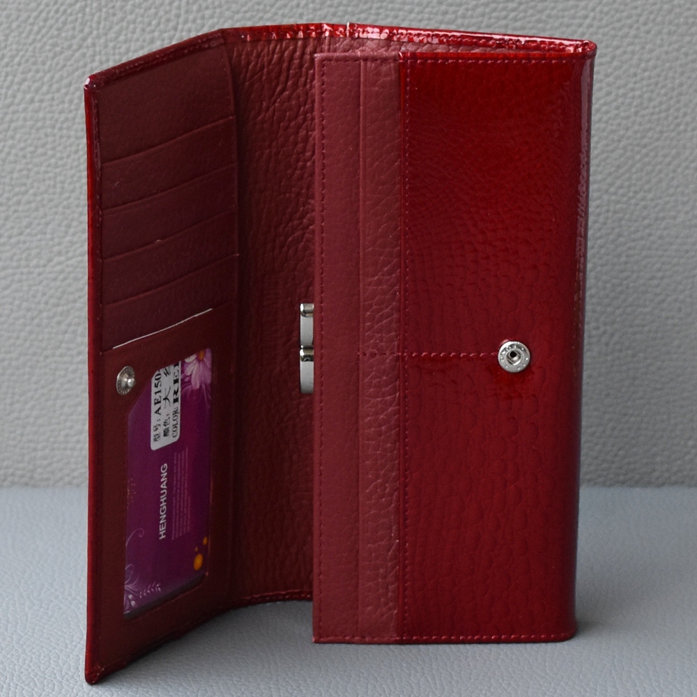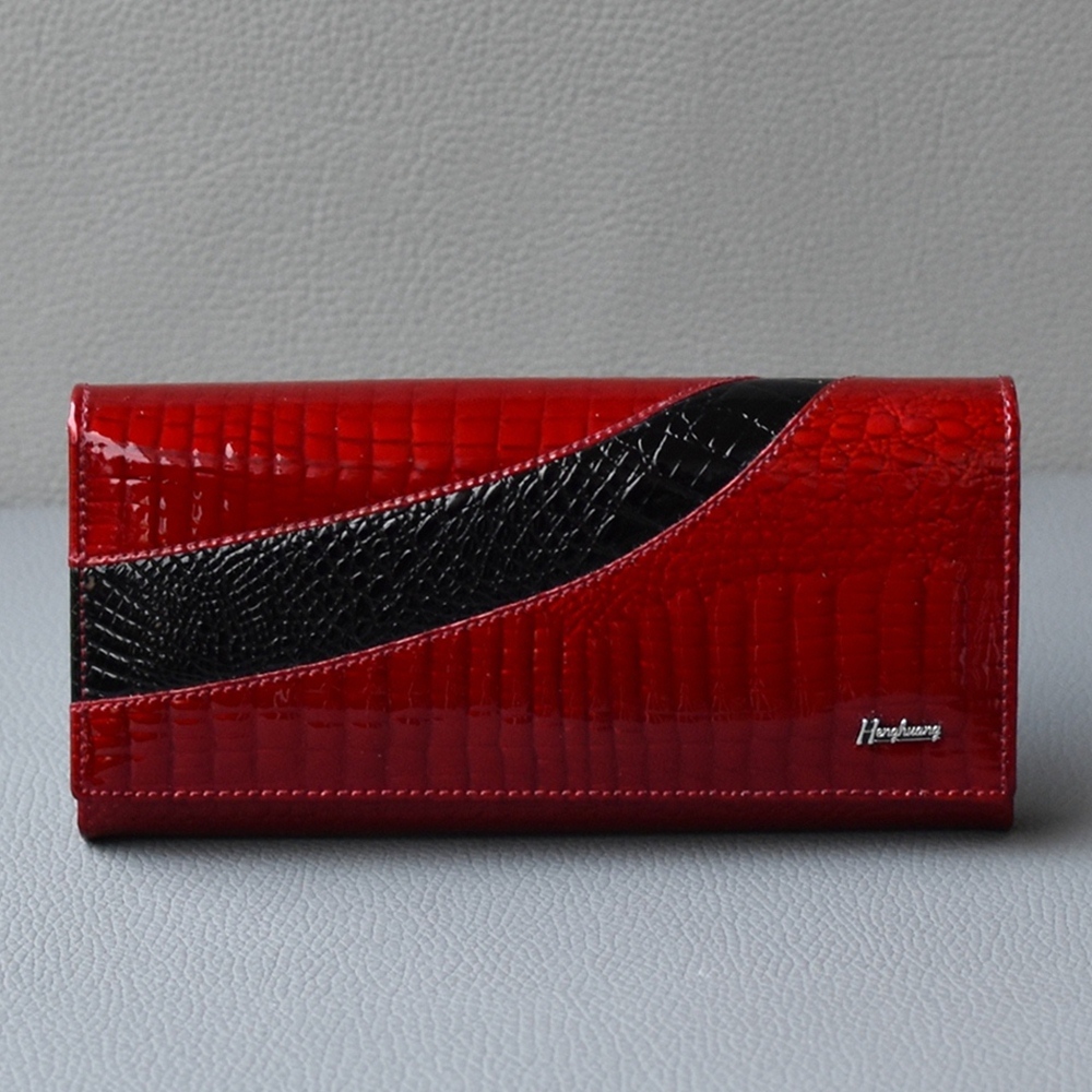 Лачено дамско портмоне от естествена кожа вътрешен монетник ярко червено