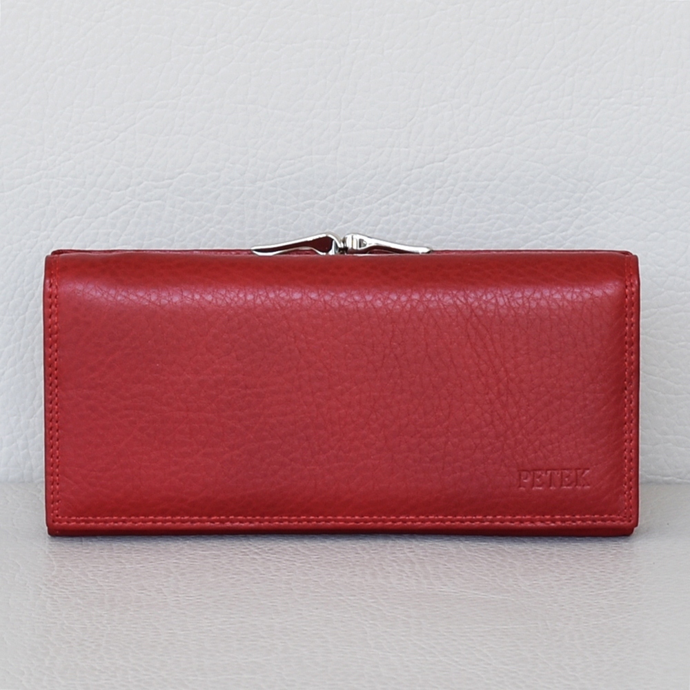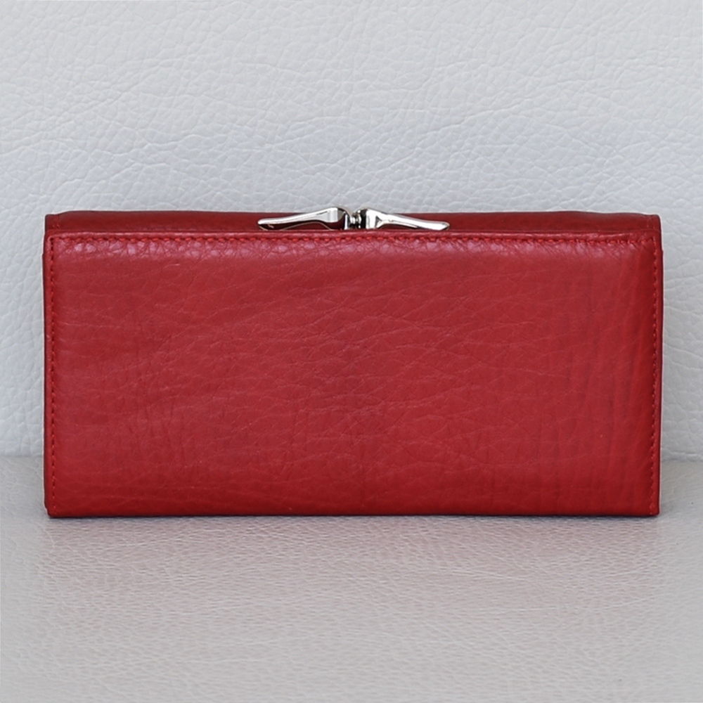 Луксозно дамско портмоне от естествена кожа закопчаване-скрити магнити, външен монетник червено Код SH17004