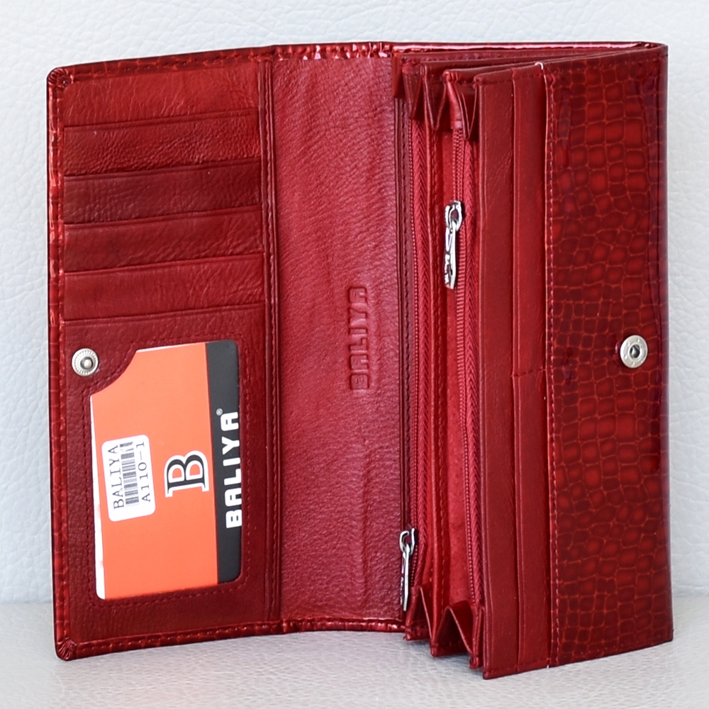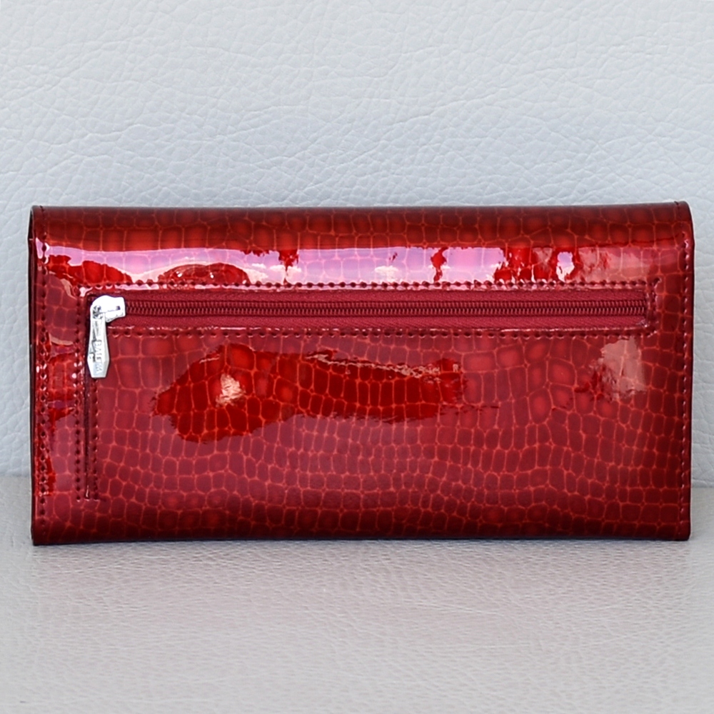 Дамско портмоне лачено от естествена кожа, олекотен модел, червено голямо Код SH140024