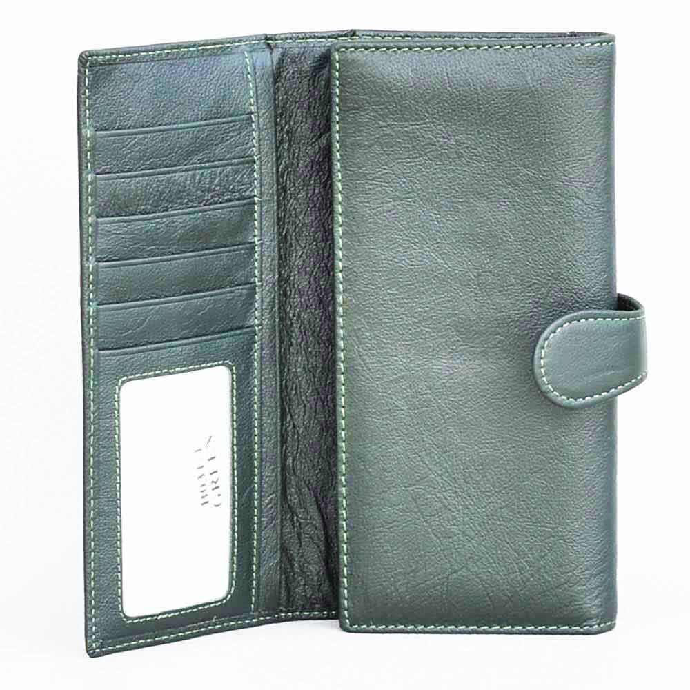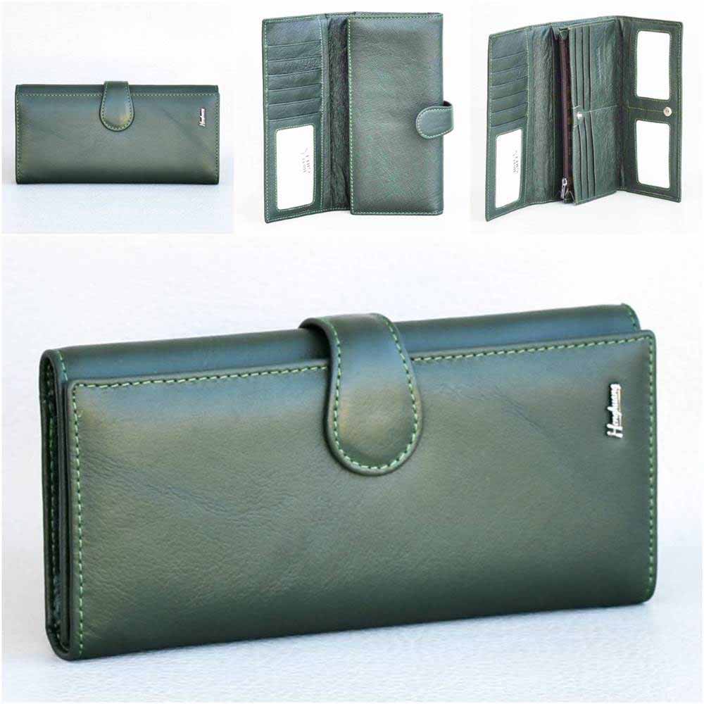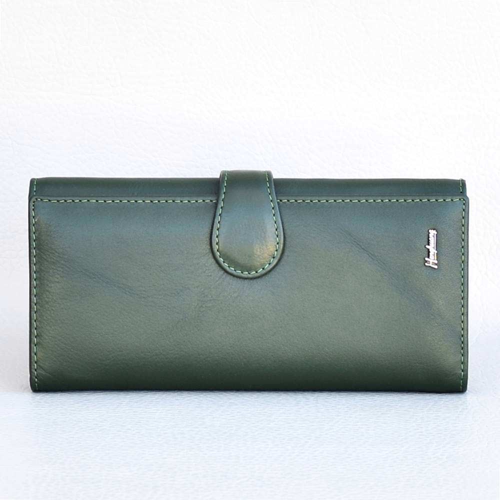 Дамско портмоне от естествена кожа с много отделения за карти и документи, тъмно зелено Код LB4-031