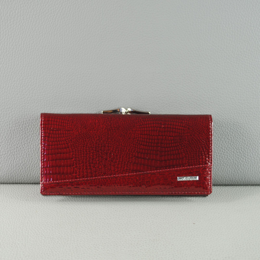 Дамско портмоне от естествена кожа лачено червено с много прегради Код SH938