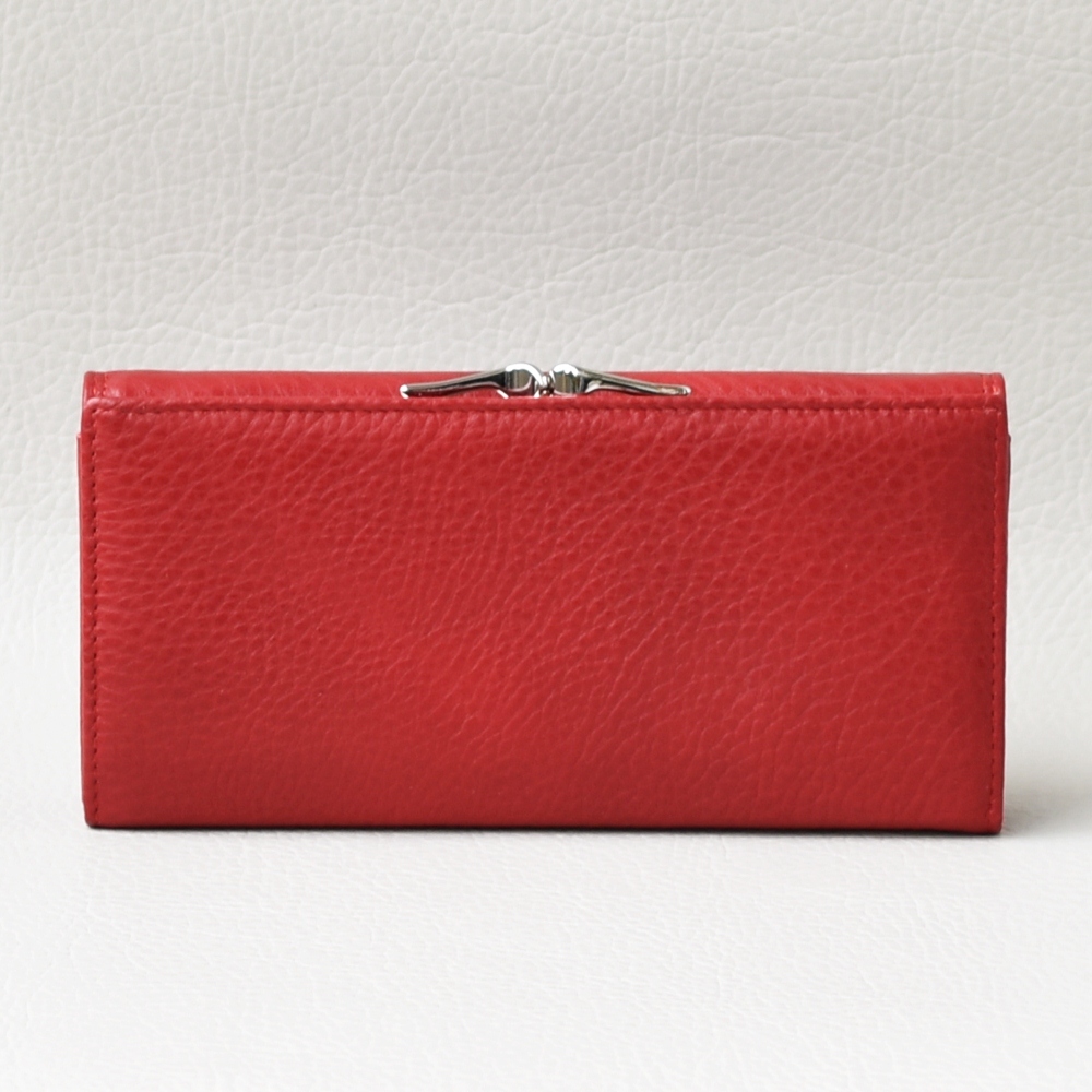 Луксозно дамско портмоне от естествена кожа закопчаване-скрити магнити, ярко червено, външен монетник