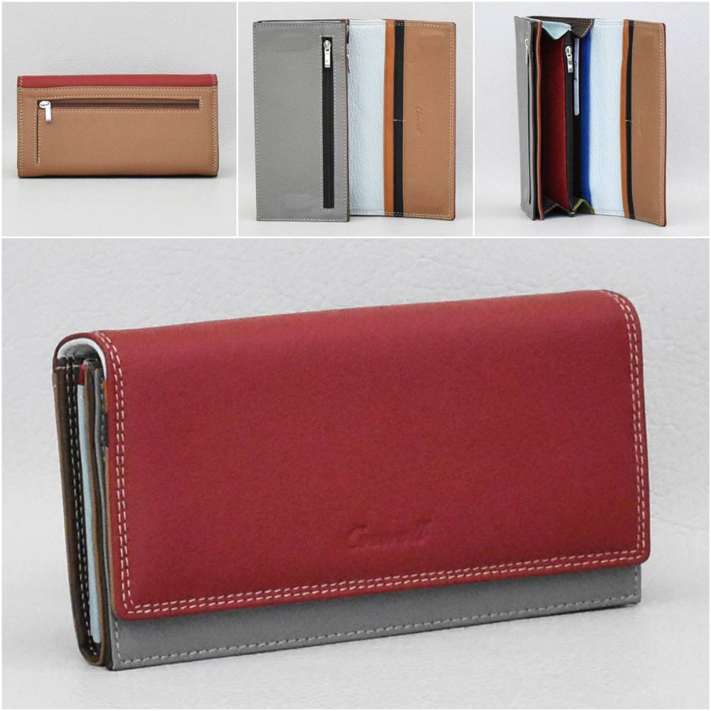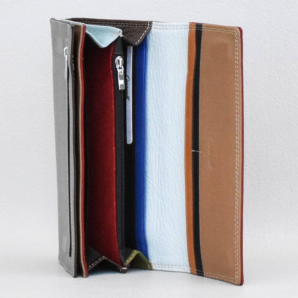 Класическо голямо дамско портмоне от висококачествена естествена кожа, външен монетник с цип, две вътрешни отделения с цип, две отделения за банкноти, 14 отделения за карти и две допълнителни големи джобчета.