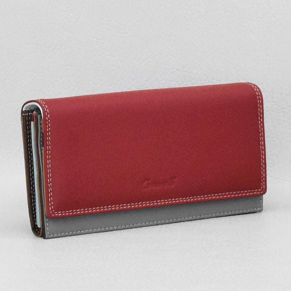Дамско портмоне от естествена кожа, външен монетник с цип, бордо със сиво Код SH2402354