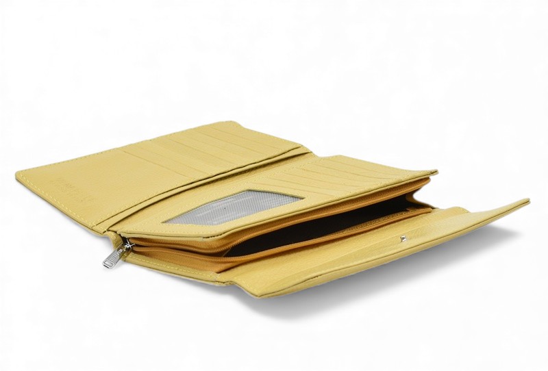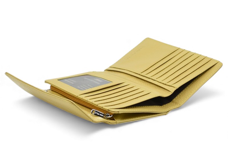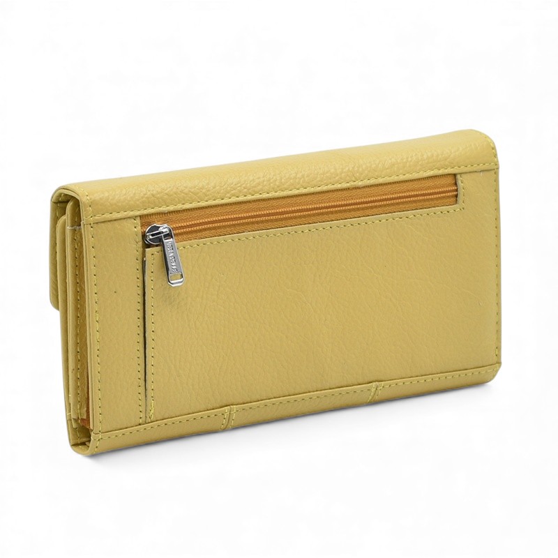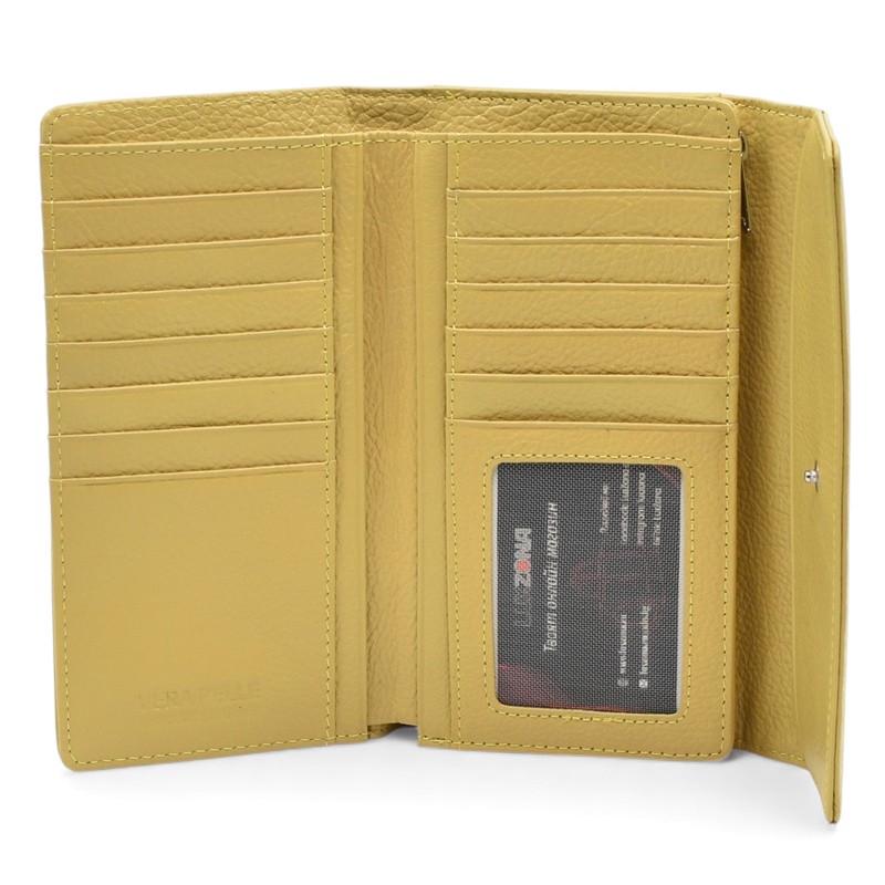 Дамско портмоне от естествена кожа с много отделения за документи и карти жълто Код LW50-12