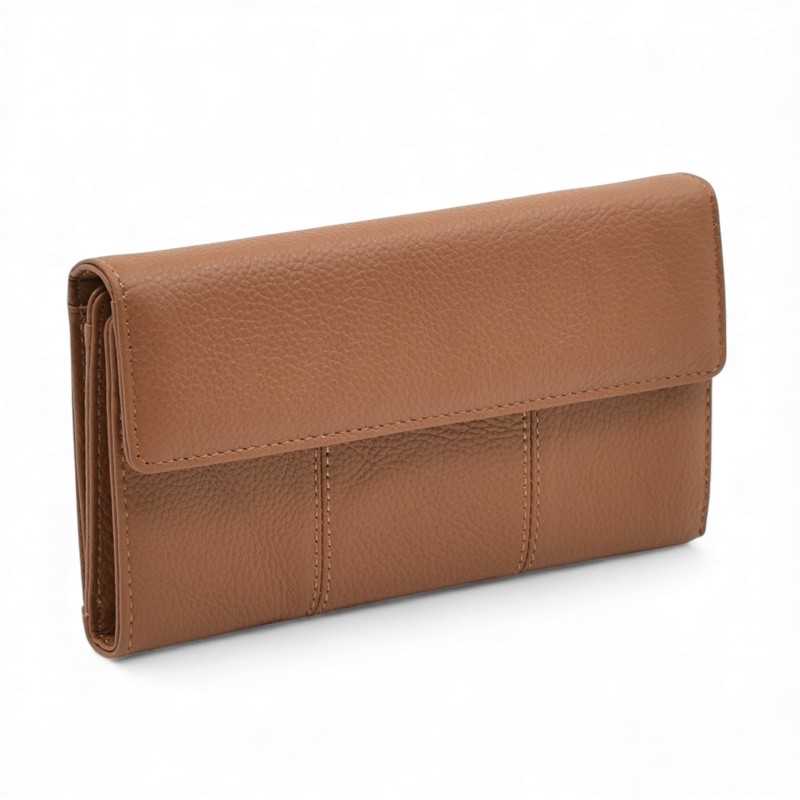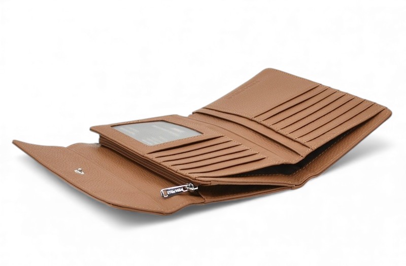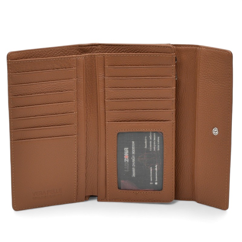 Дамско портмоне от естествена кожа много отделения за карти изчистен модел капучино Код BR-1851-4