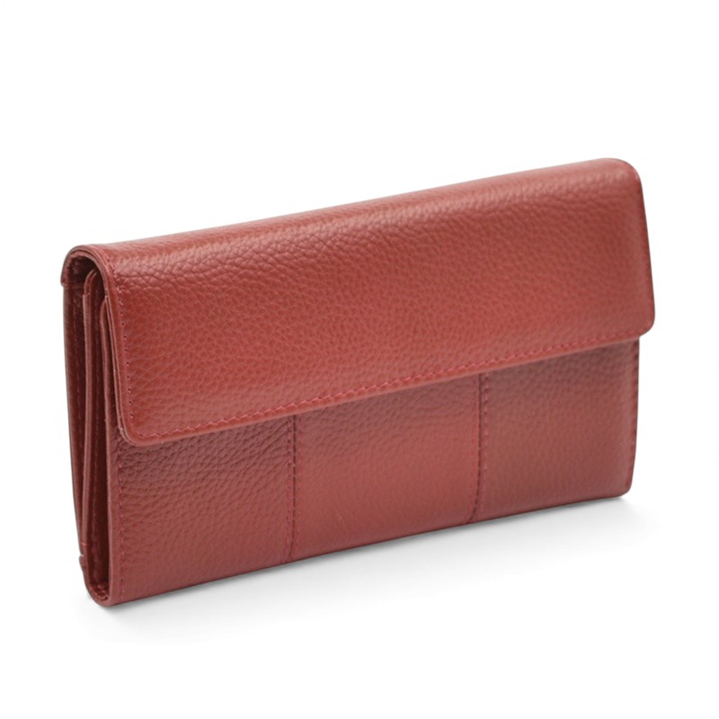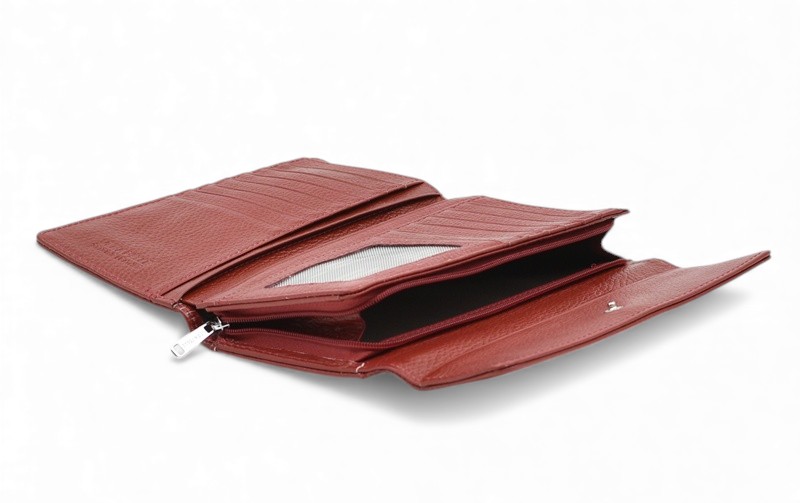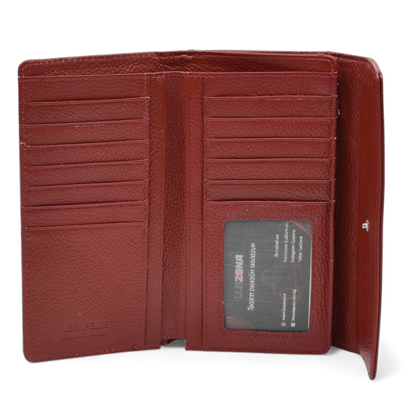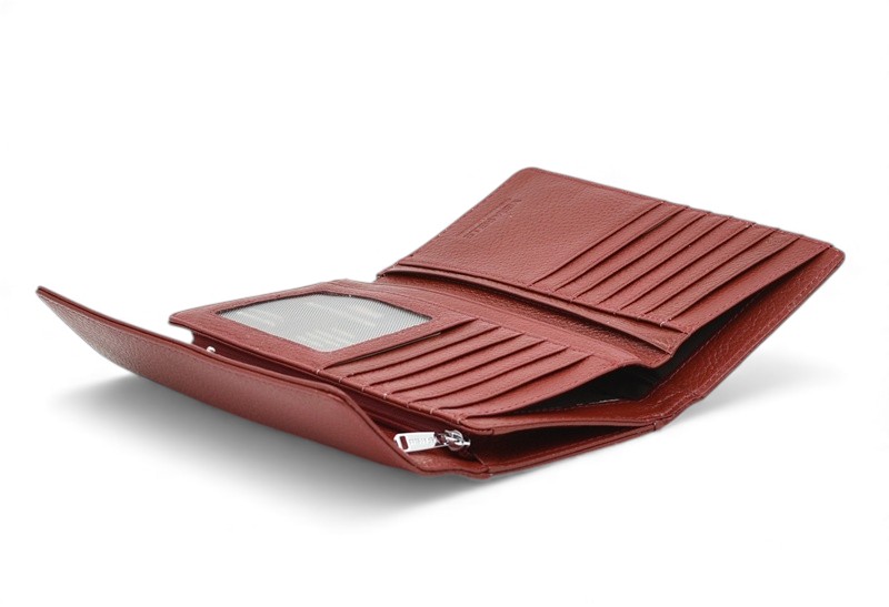 Дамско портмоне от естествена кожа с много отделения за документи карти и банкноти червено Код L-1973-4