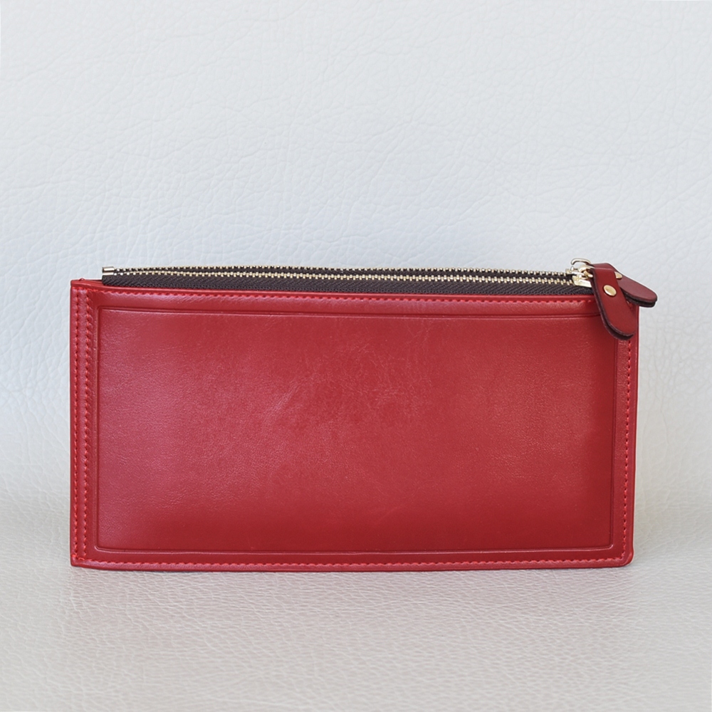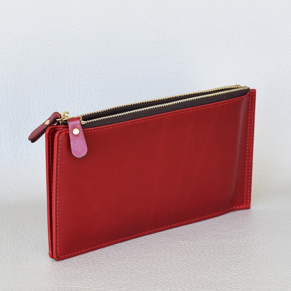 Евтино дамско портмоне от еко кожа с много отделения за карти червено