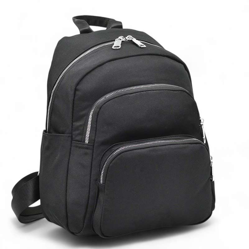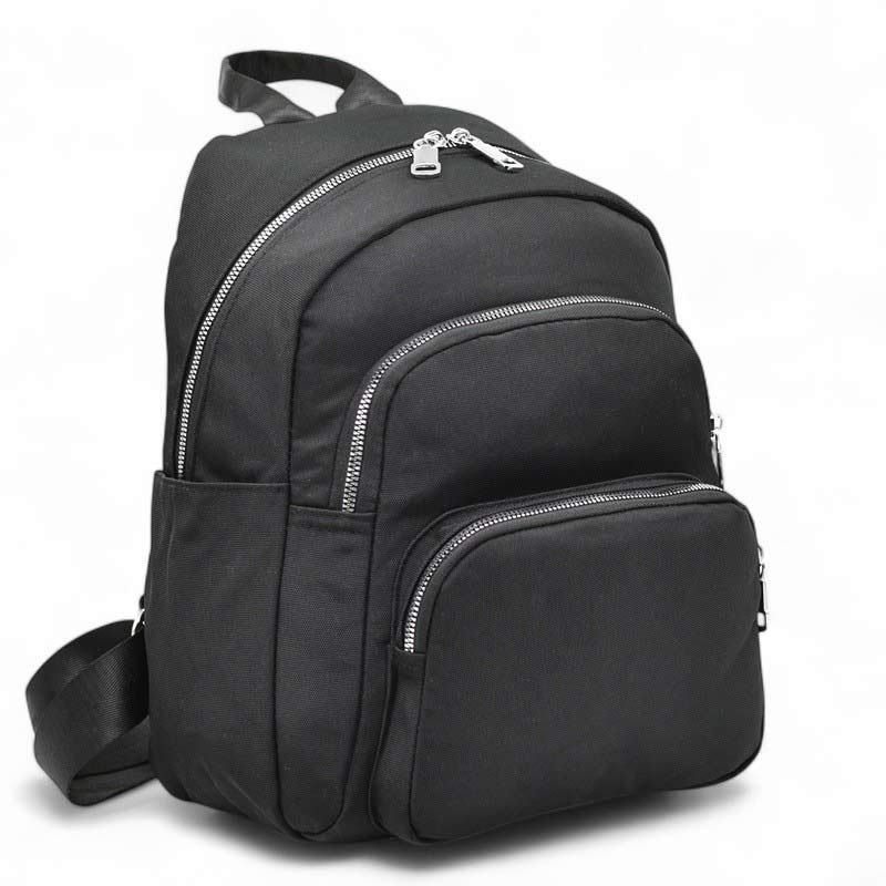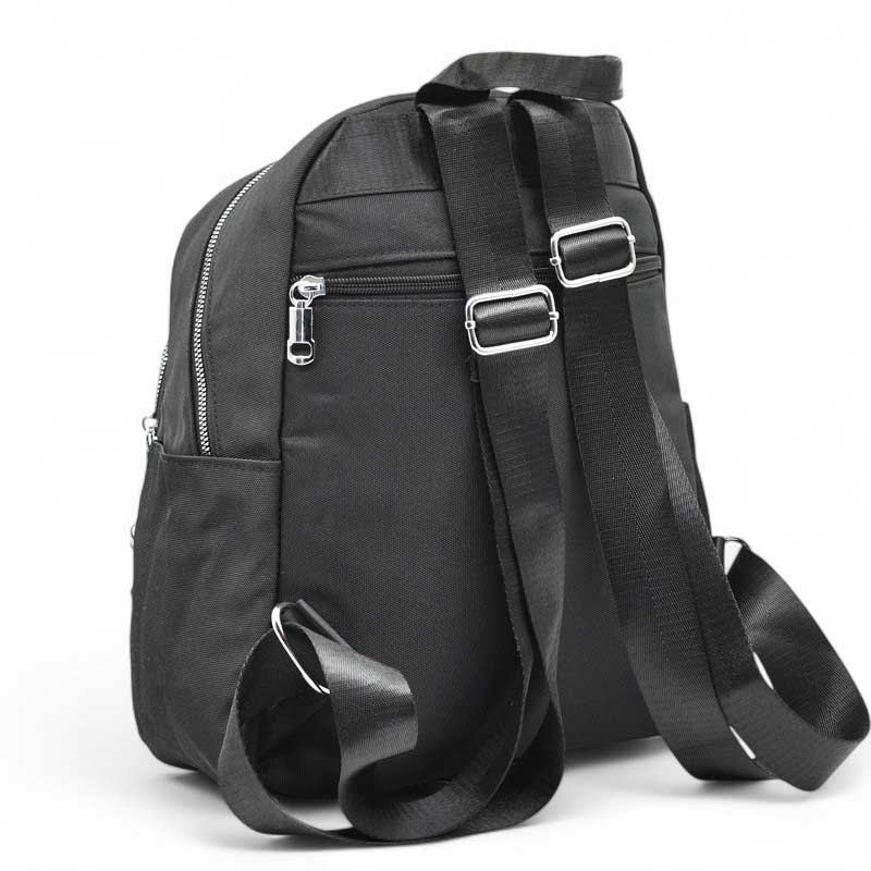 Дамска раница от здрав водонепропусклив плат метални ципове изчистен модел черна Код GLA-6-1