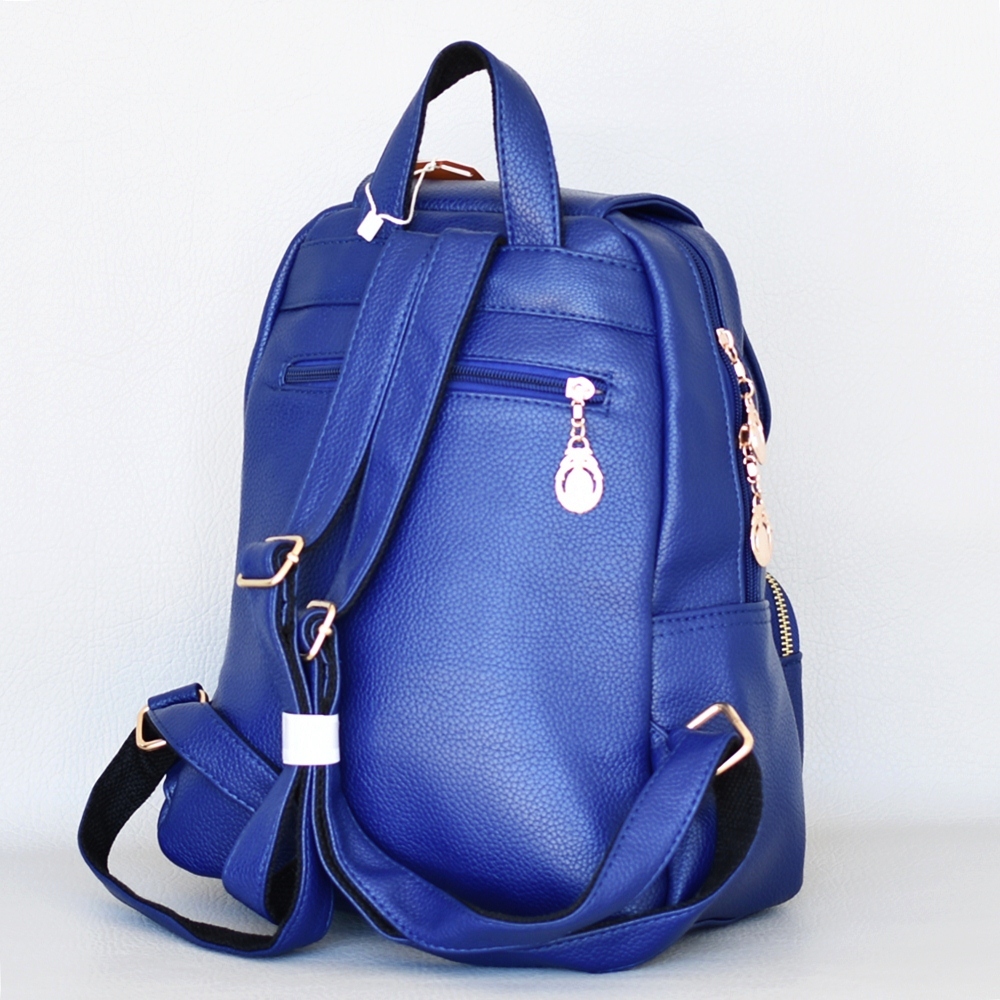 Дамска раница синя стилна от еко кожа с капак и три външни джоба за формат А4 Код BR2000541