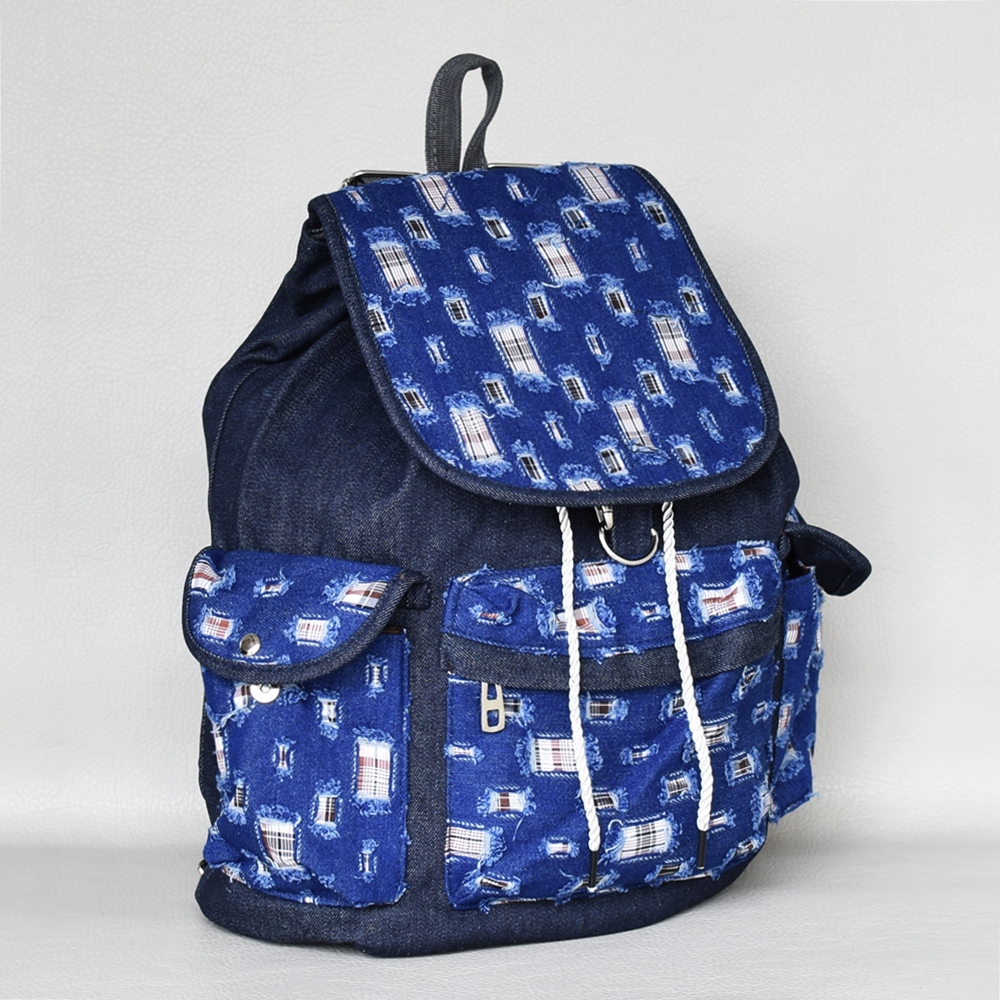 Дънкова дамска раница мека голяма за формат А4 с капак и джобчета олекотена синяДънкова дамска раница мека голяма за формат А4 с капак и джобчета олекотена синяДънкова дамска раница мека голяма за формат А4 с капак и джобчета олекотена синя