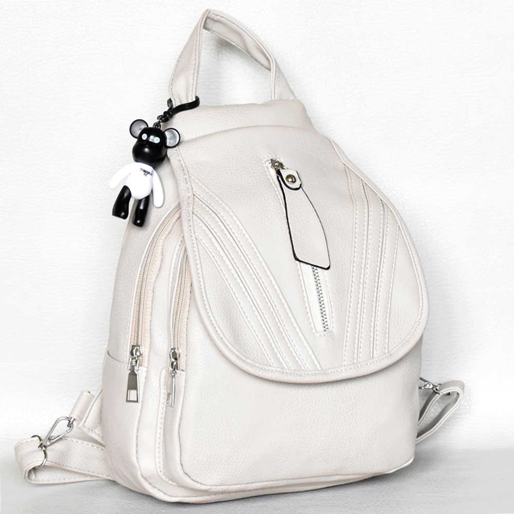Дамска раница от еко кожа с капак стилен модел светло сиво-бежова Код SH1802178