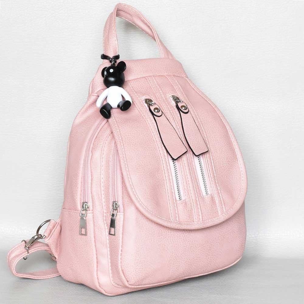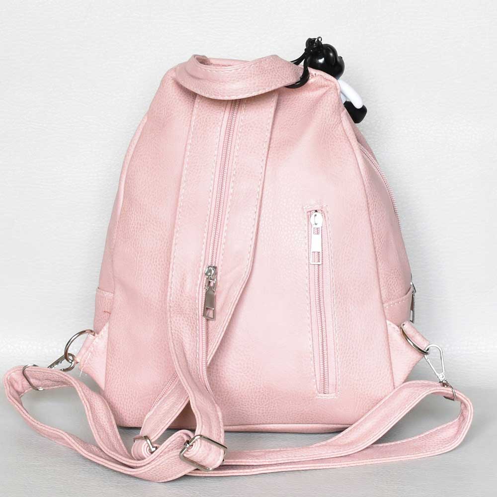 Дамска раница от еко кожа с капак и висулка стилен модел пудра Код SH1802181