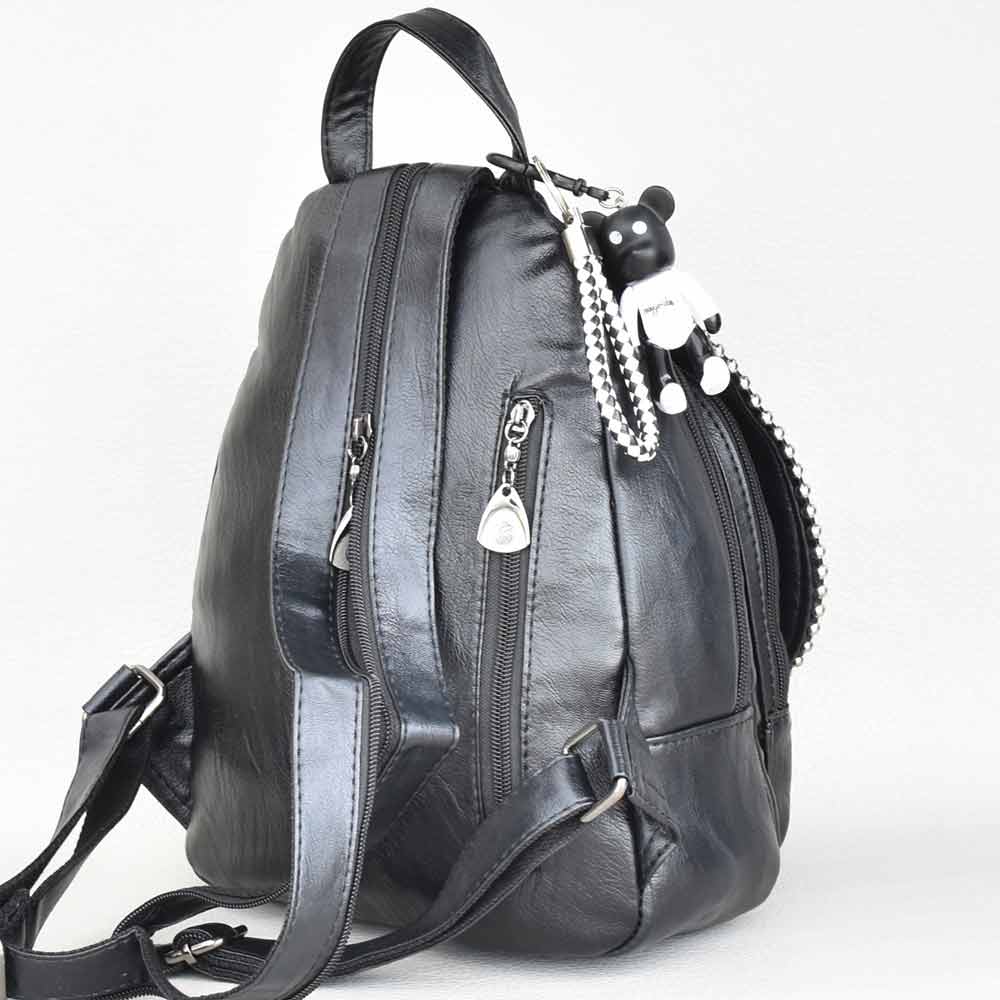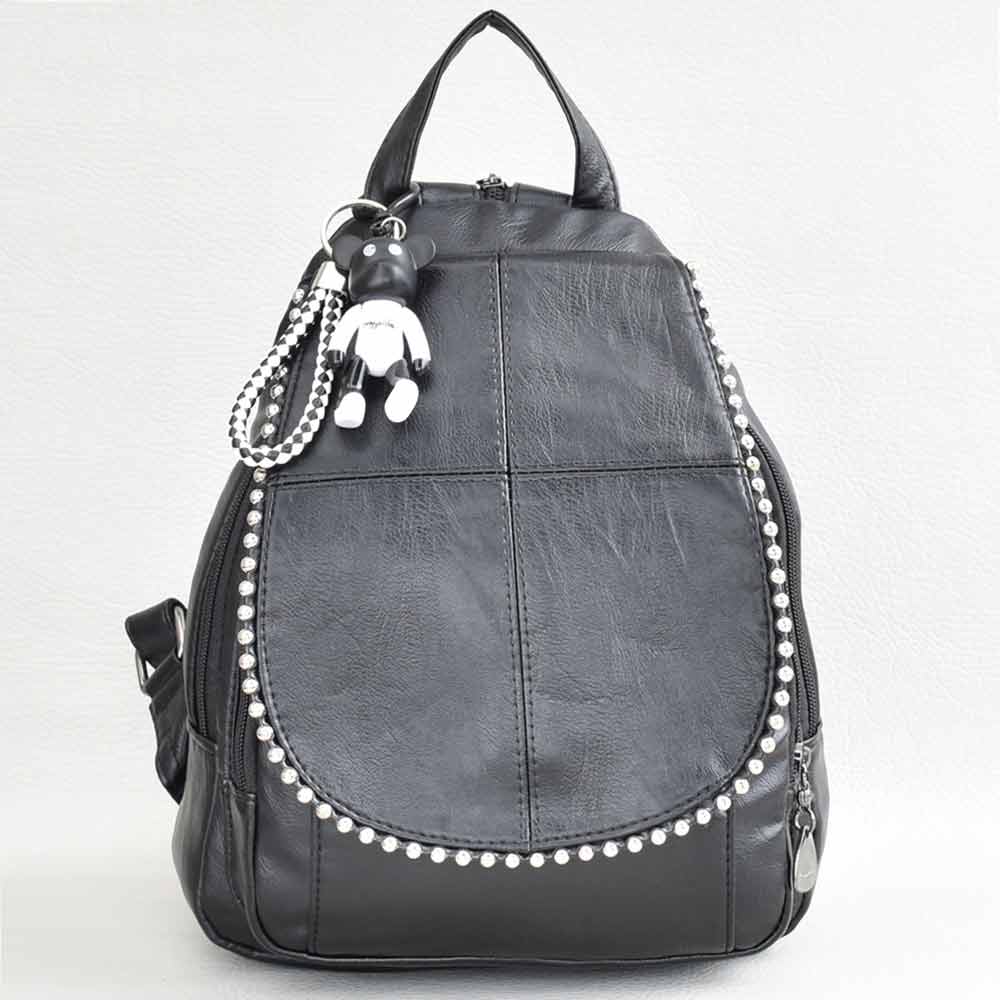 Дамска раница от еко кожа с високо качество, капак с капси и декоративен цип и ефектна висулка Код BR102380