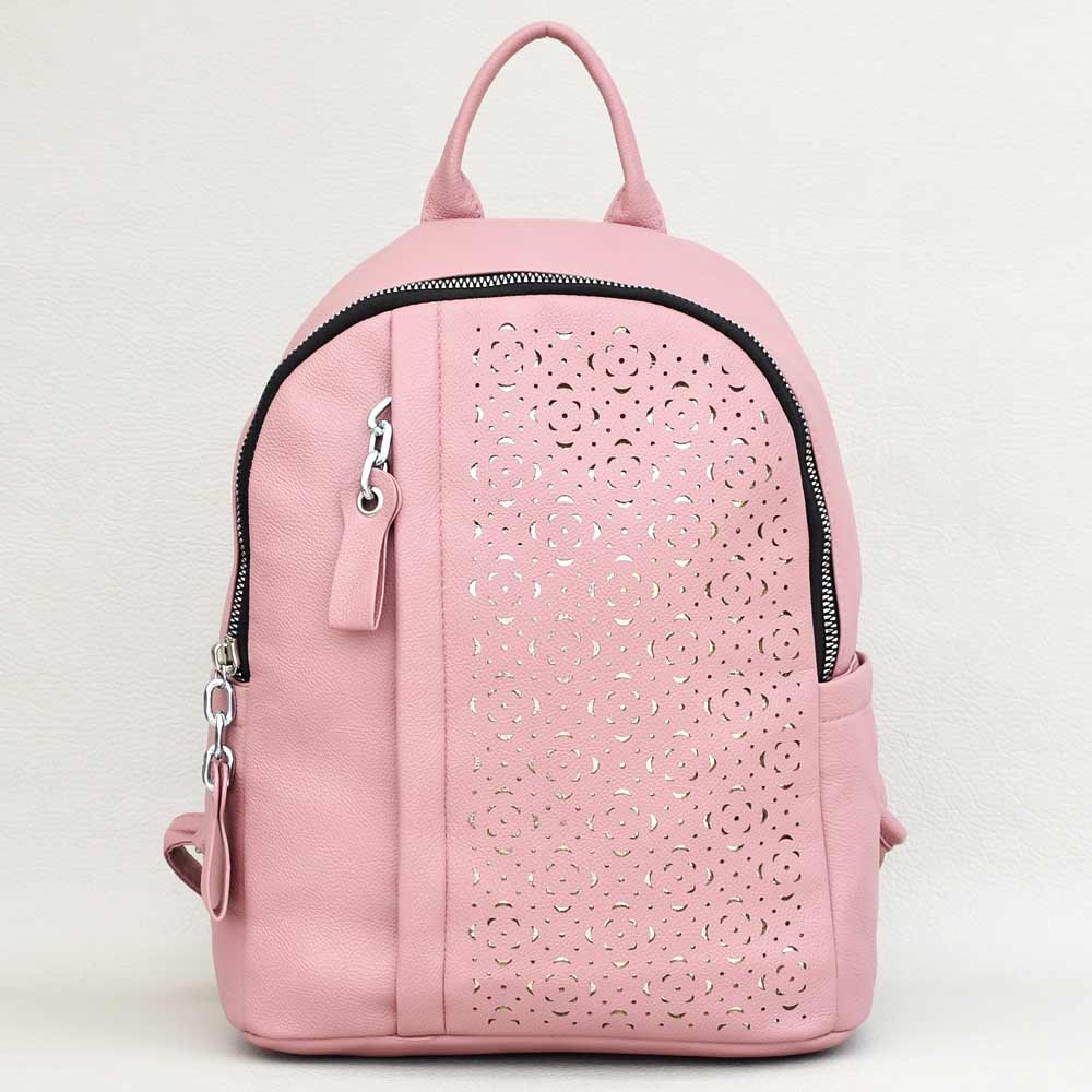 Дамска кожена раница, голяма с рязана бродерия, розова Код SH2026-2