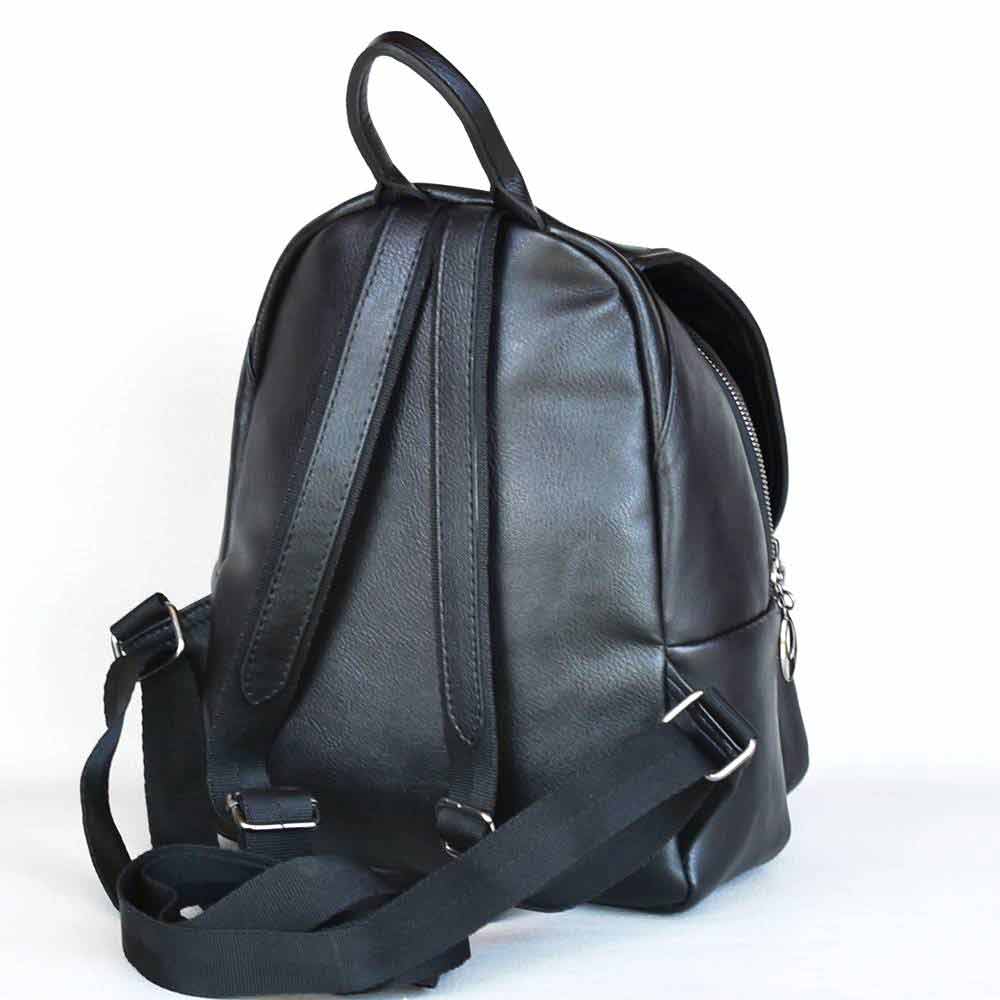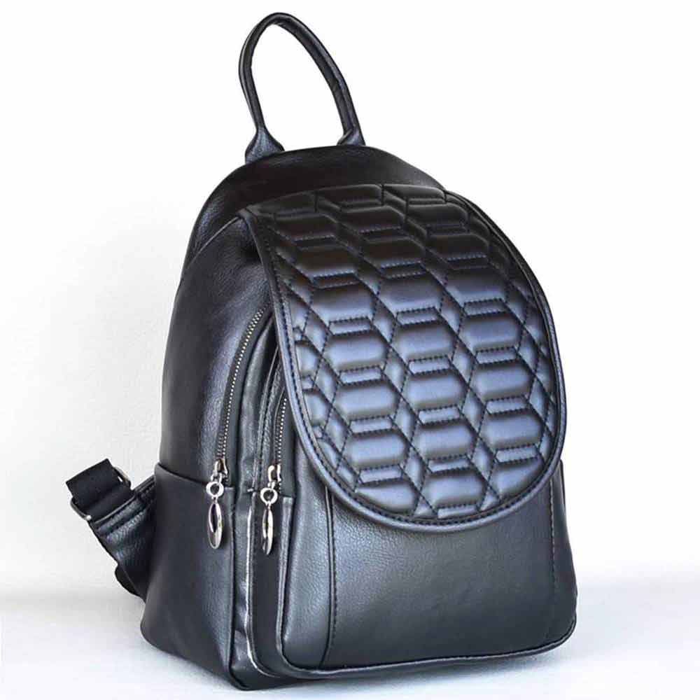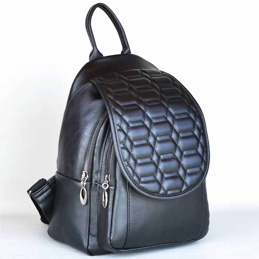Дамска раница от висококачествена еко кожа, с капак на баклавички, елегантен модел, черна Код N1205