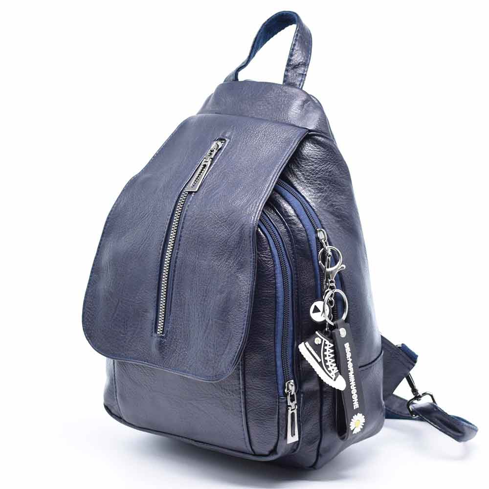 Дамска раница от еко кожа с капак с декоративен цип, спортно-елегантен модел, синя, ПОДАРЪК ВИСУЛКА Код BR837-1